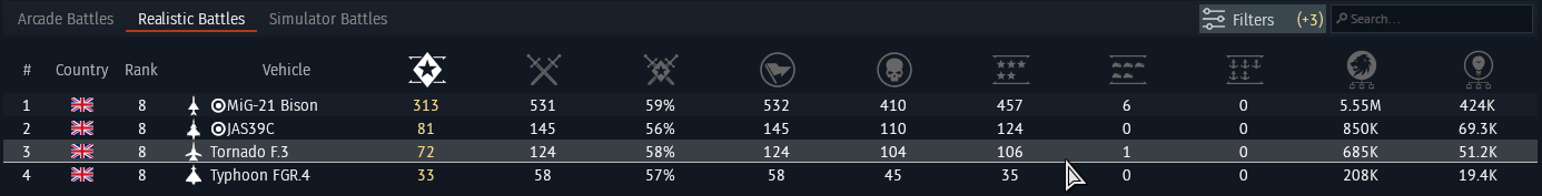 So yes, back to the question: Is the F.3 Late at 13.0 flyable now or should I wait for the BR brackets to increase to 14.7/15.0 before spending the time to fly it out? My experience in the F.3 itself has given it the crown of being my favourite 12.0 jet to fly and made it my second favourite Rank 7 plane to fly next to the Gripen.