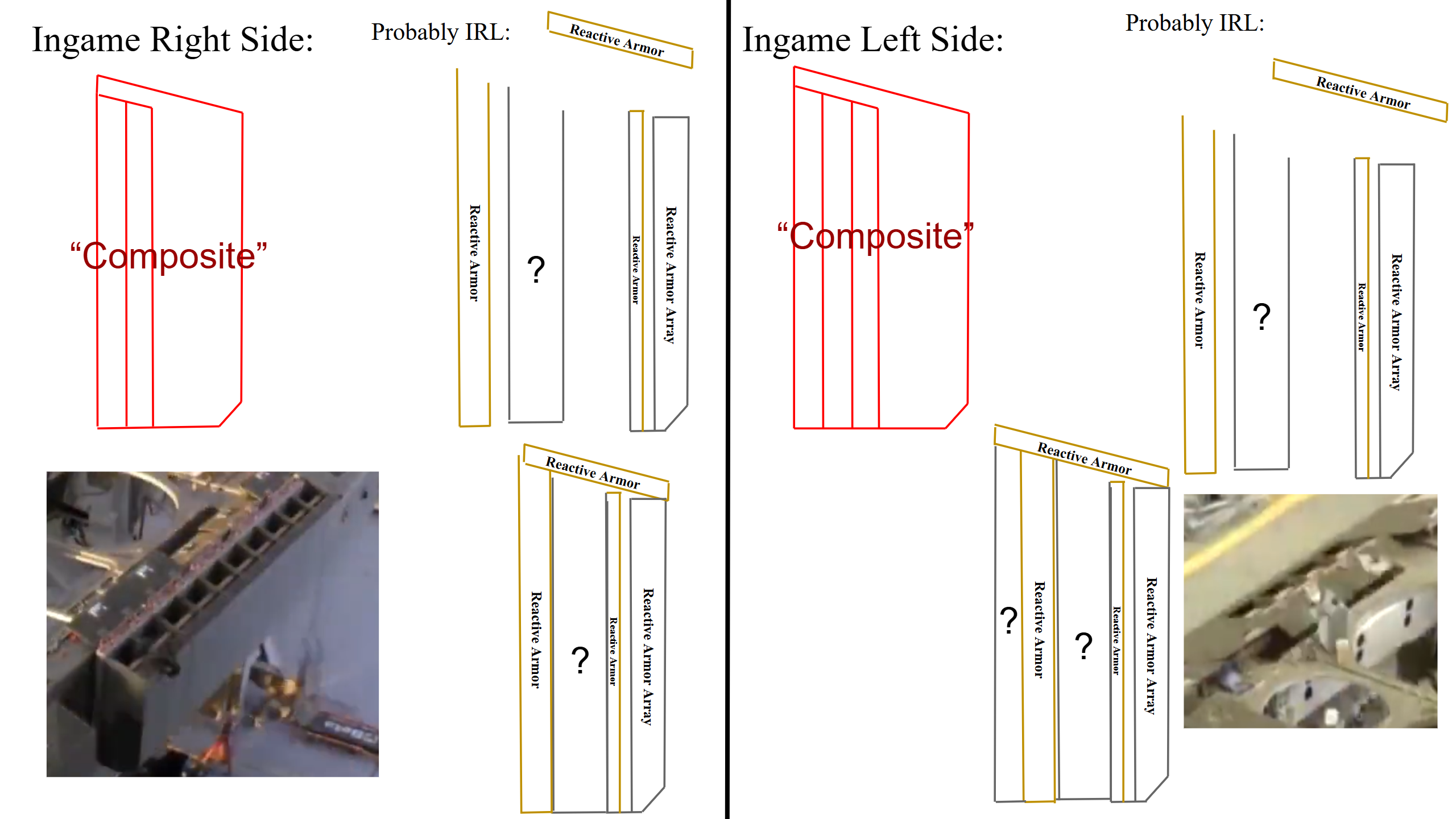 Disclaimer, do not take the “IRL” images I’ve made as fact, these are my guesses and determinations. All armor elements are likely housed in composite shells too.