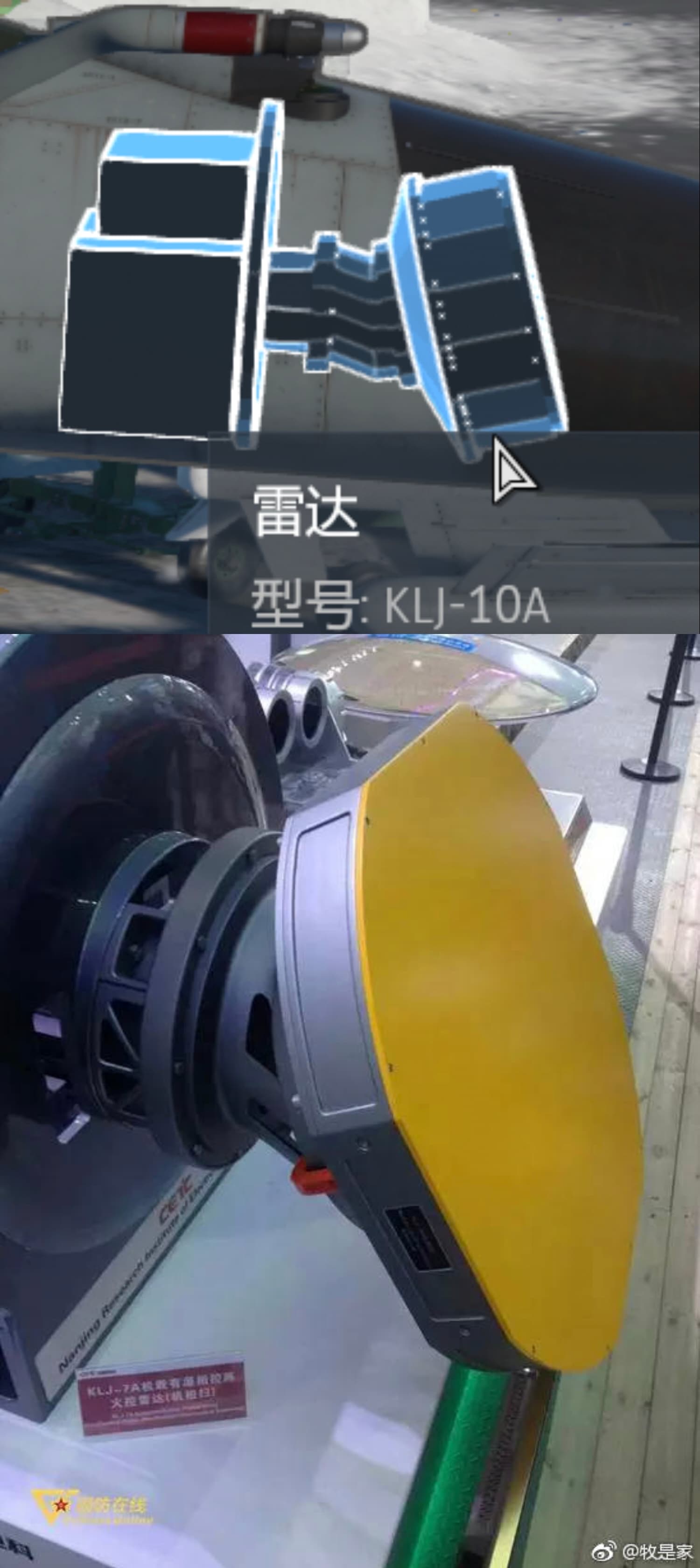 The KLJ-7A radar is likely not the one used on the J-10C. It is correct that the J-10C’s radar is the KLJ-10A .This can be discerned from the shape of their radar arrays – one is roughly rectangular, while the other is oval-shaped. It is confirmed that the KLJ-7A is used on the JF-17 Block III .