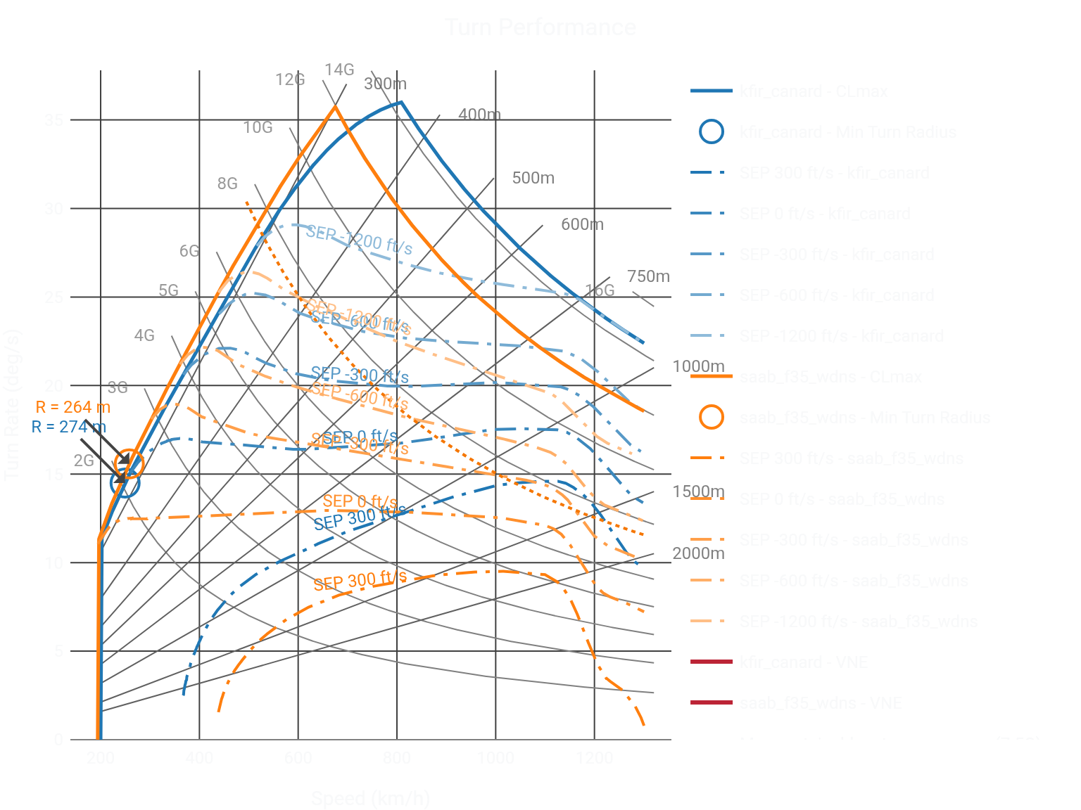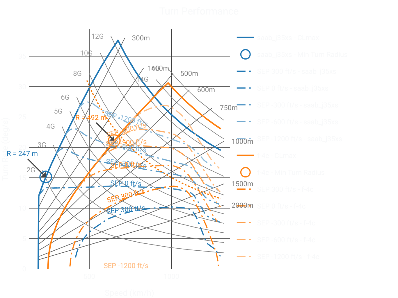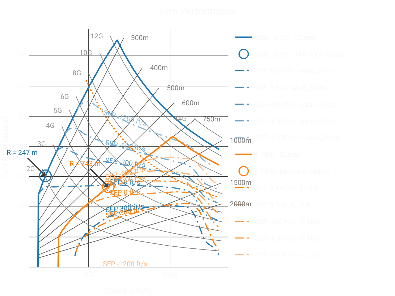 It turns very quickly at 550kph, but fighting at this speed means the missiles have no energy and you will stall. How bad is 550kph? The subsonic attackers like Su-25 fight at a way faster speed.