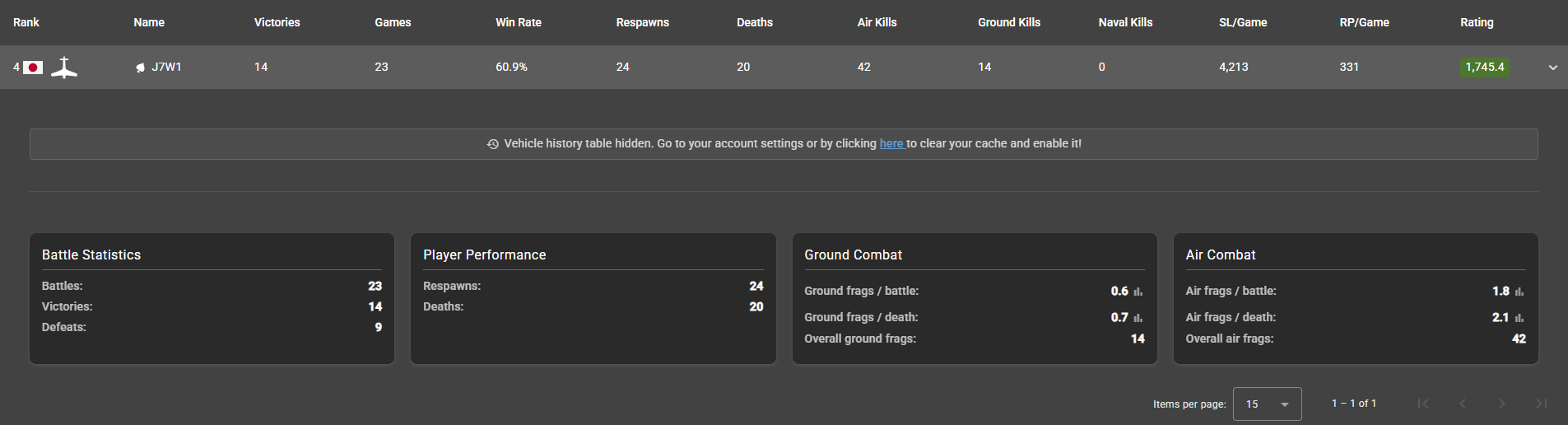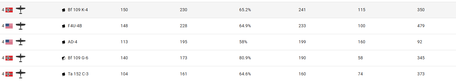 If you want, I can even show you what the really good planes are, which have over 30K/D and over 80% winrate. If you know how statistics work, you should know that it is not reliable, especially when you really want to comapre a vehicle is good or bad. The fewer people playing, the better the statistics tend to be, and the general stats will include all kinds of vehicle stats(bombers, strikers, premiums).