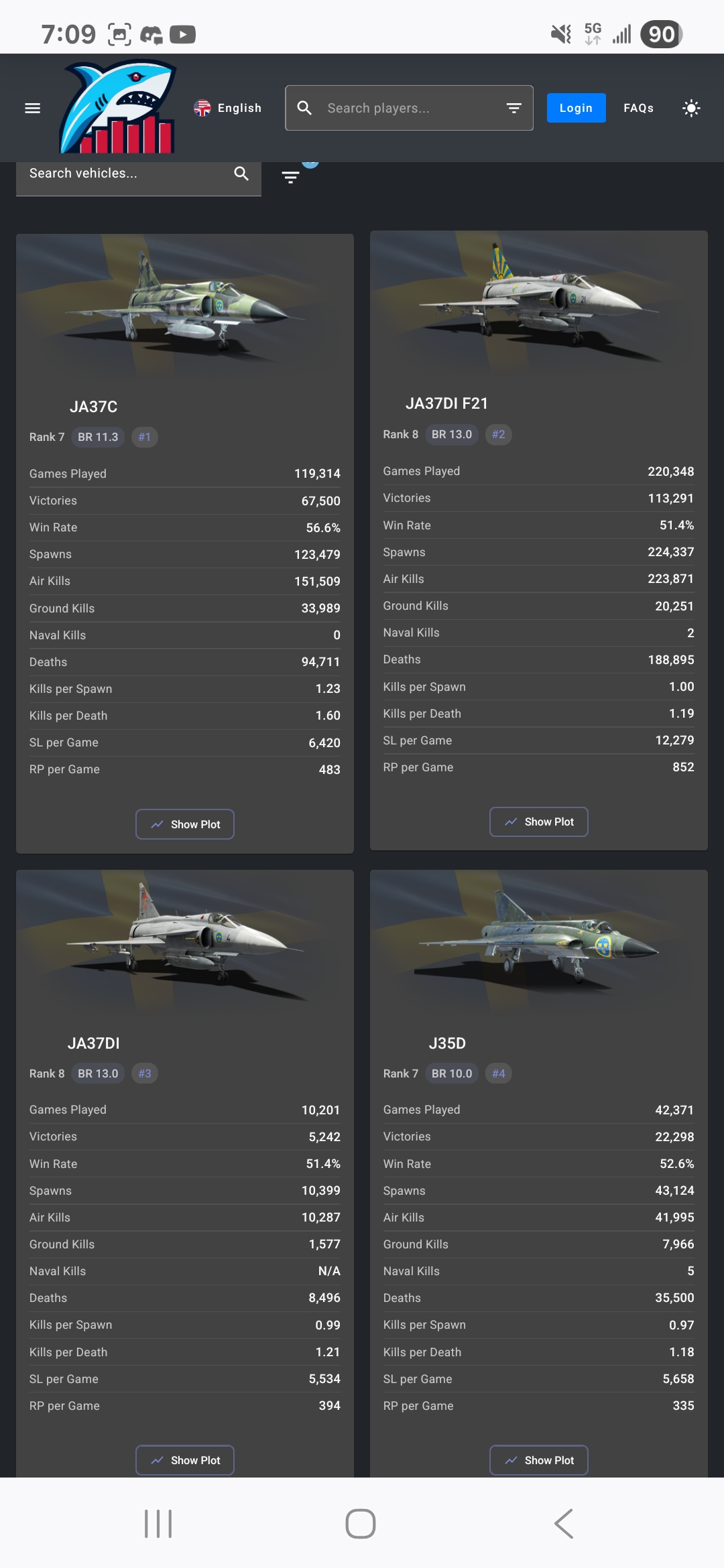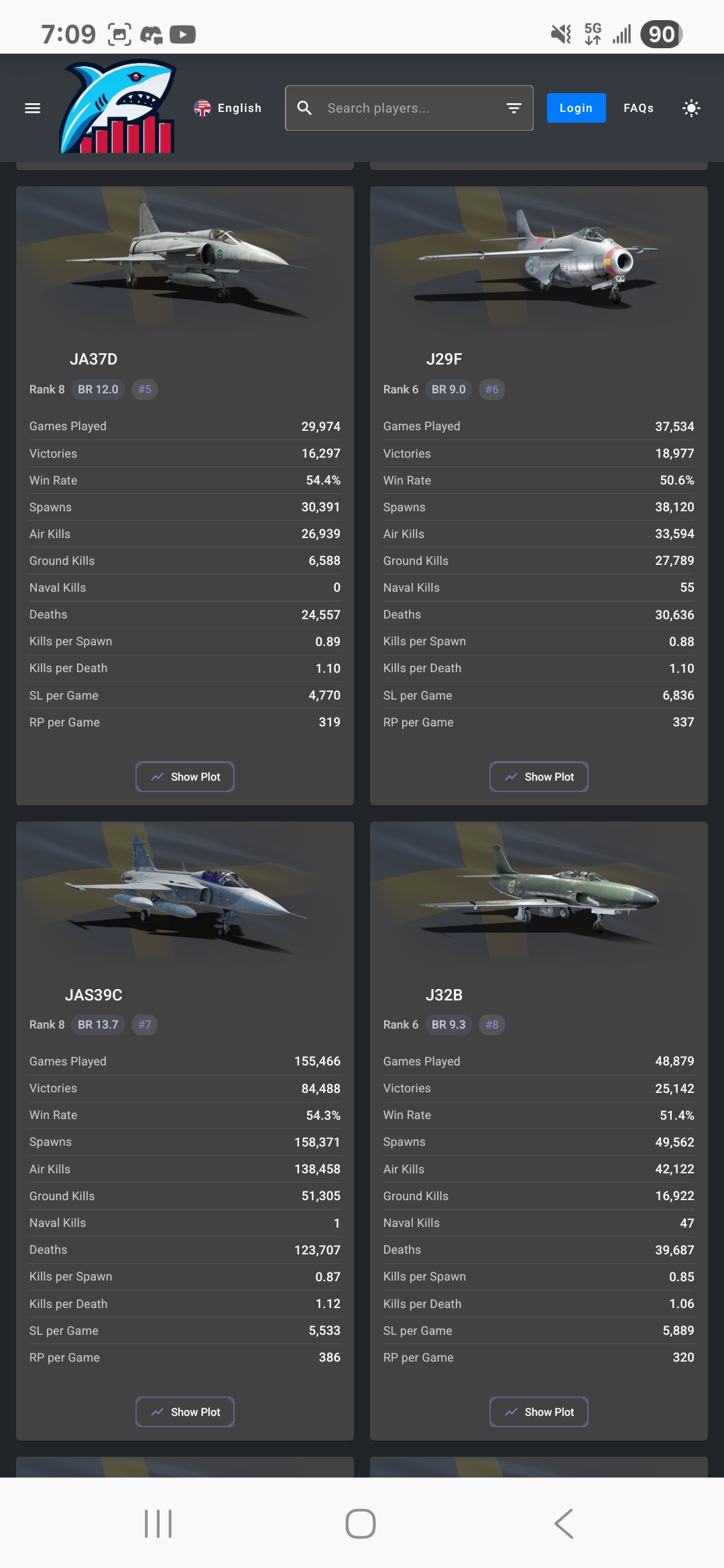A whopping KD of 1.6 and KB of 1.23. We have to consider the fact that the JA37, being a tech tree vehicle, have stock grinding that affects it’s performance.
