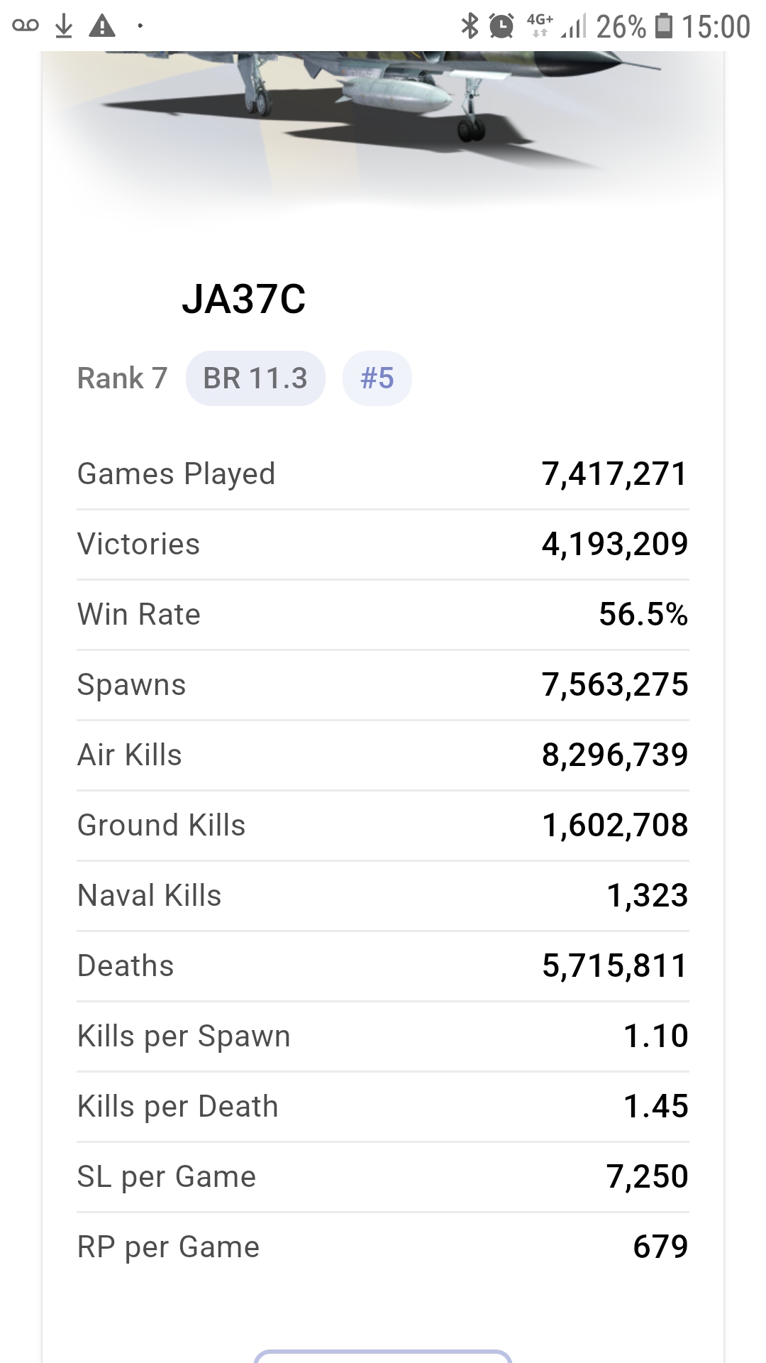 you literally appealed to all-time battles played knowng full well the MiG-23 was longer in the game to try and prove that Jaktviggen is underrepresented in order to downplay its impact.