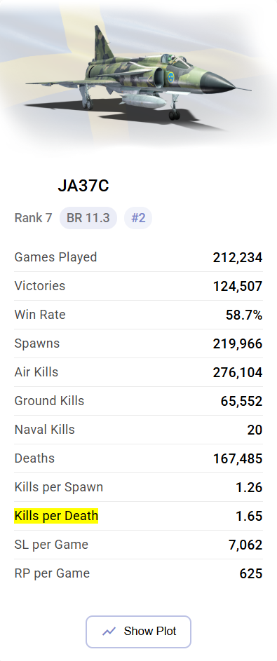 The only plane to reach your “expected” K/D is the most broken plane in the game trading for $300.