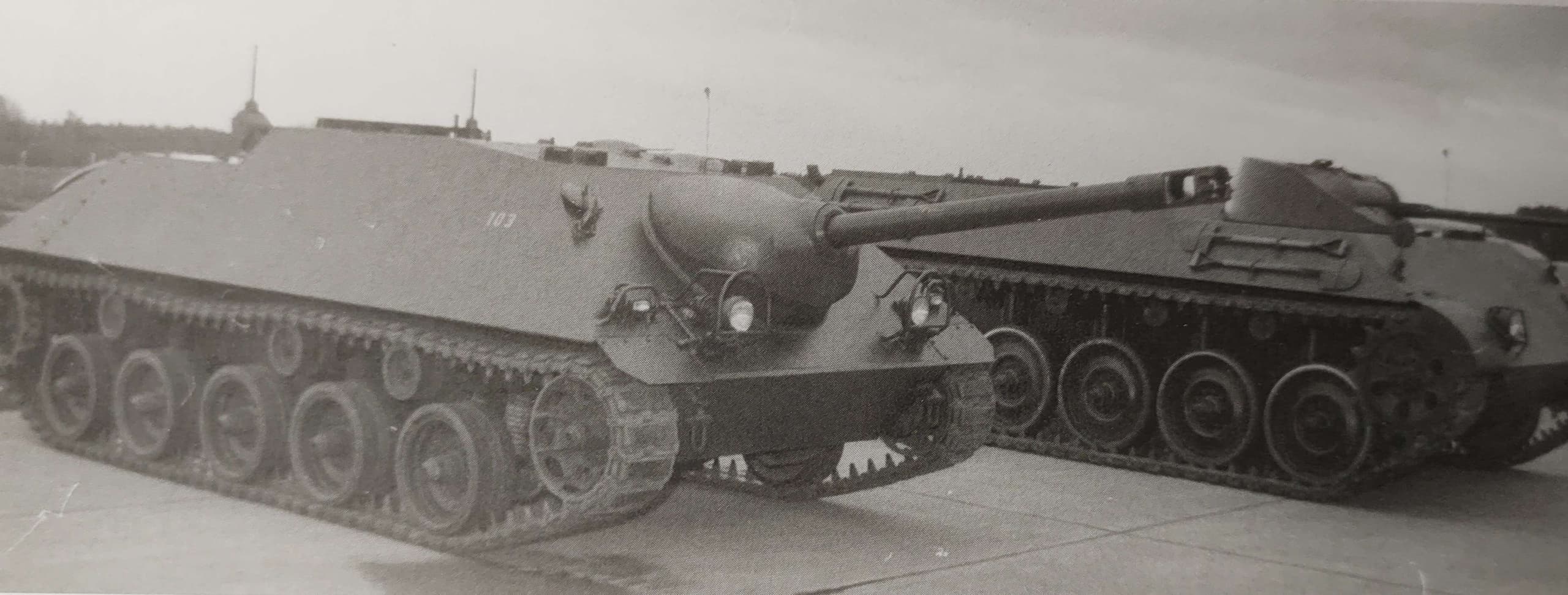 At the same time as the early trials of the HS.30, a proposal was put forward to develop and adopt a tank destroyer armed with a 90mm gun. This would be the first domestically-developed armored vehicle from West Germany following World War Two, so lessons learned from the war were used during the design. The HS.30 was chosen as the base for the new tank destroyer, and the project began officially in 1957. By 1959 a mild steel prototype had been built to test the overall design of the vehicle with a full armor prototype being completed later that year. Tests would show several issues, many of which were endemic to the HS.30 platform. The new armament, a 90mm DEFA D915 low-pressure gun, took up far too much room in the already cramped fighting compartment. Traversing it all the way to one side made it impossible to drive properly, and all the way to the other made it impossible to fire the gun. The loader was supposed to operate the radio but could not comfortably reach it and perform his duties. The DEFA D915 was considered inaccurate and too short-range for the job, and the ammunition was not NATO-standard, complicating logistics. There were also issues with ventilation, as the vehicle had no fan for removing projectile gases from the fighting compartment. Additionally, there was no NBC protection to speak of. Lastly, the gun being placed so far forward cause such a severe weight imbalance that it affected mobility and even broke the running gear. Overall, the design was insufficient on all fronts, and so was not put into service.