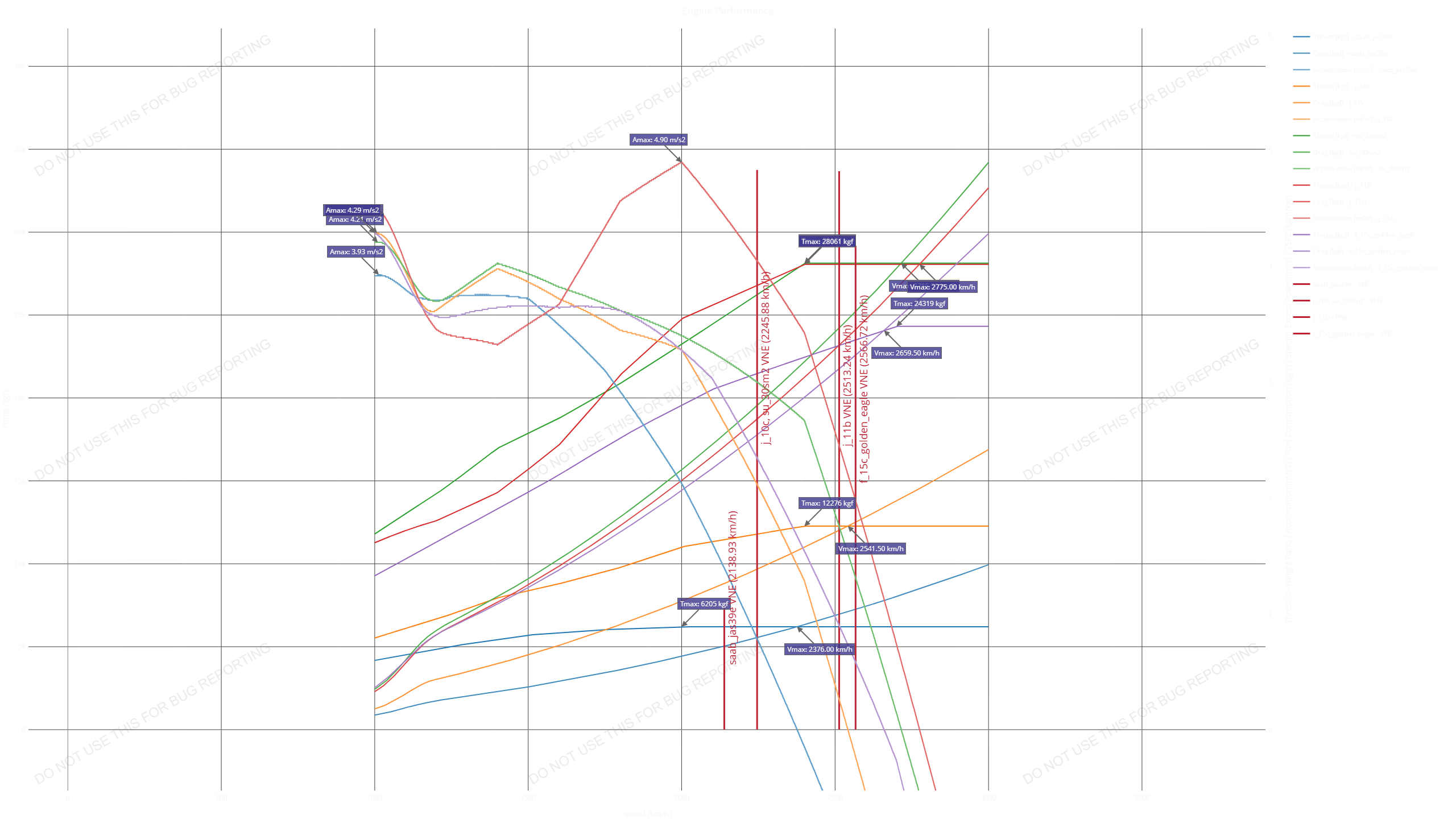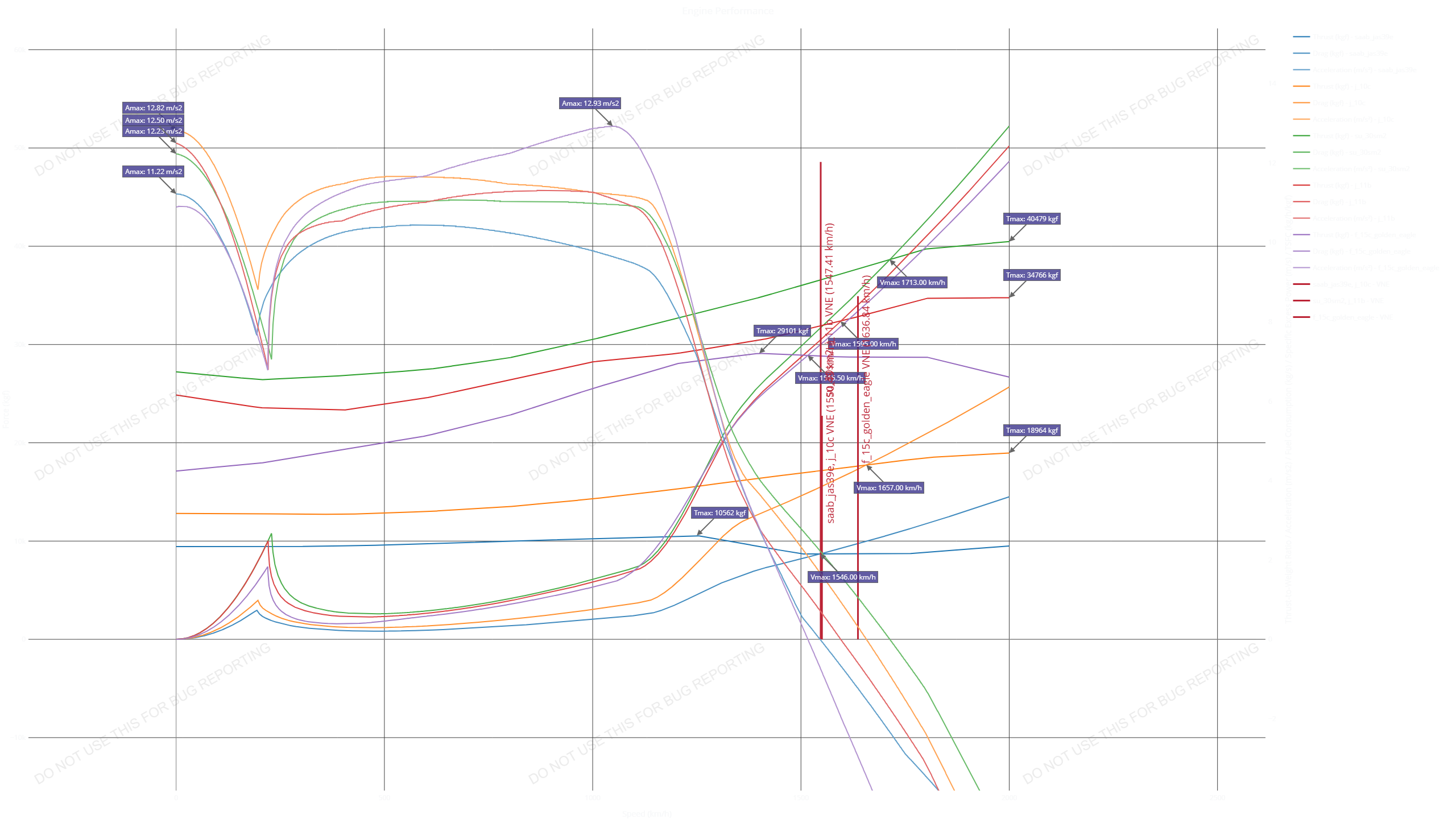 At 5000m its the best in acceleration up intill around 700km/h where it goes middle of the pack and second slowest top speed. (Edit: corrected chart as i forgot to open up max speed limit)