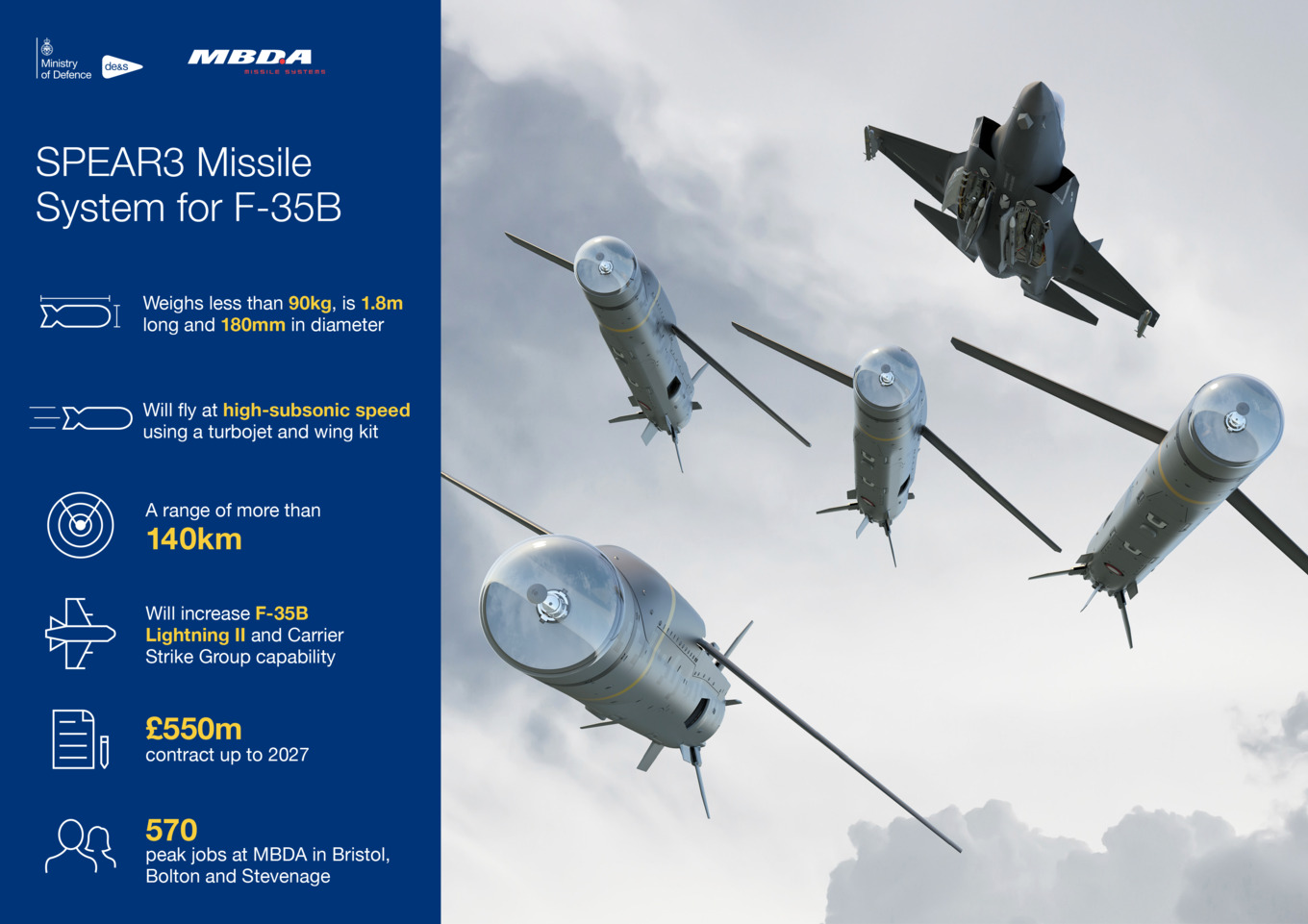 - Spear-3: 140+km range, Brimstone but with jet engine, wings and MMW+SAL+GNSS.