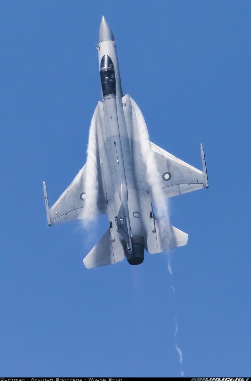 The block 03 is commonly described by the PAF as a “fourth generation plus” fighter jet and it is for a reason, it boasts vastly superior avionics compared to its original version and overall upgrades to the entire airframe. To enter into the specifics a bit more, it boasts an allegedly (by the CCTV) AESA radar that is pretty much supposed to be the KJL-7A, developed by the Nanjing Research Institute of Electronics Technology (NRIET). The avionics upgrades continue with a new HUD that is said to enhance visibility and situational awareness, a new MAW system, HMD and more sub systems such as antennas etc… Further upgrades are given to the engine and airframe. The former is the Klimov RD-93MA afterburning turbofan although there were plans to upgrade to the WS-13, which would have given the block 03 an advantage in terms of elevating thrust and optimizing the thrust-to-weight ratio. The latter are the extensive use of composite materials in the airframe to keep it lighter and boost the overall strength of it. Another improvement over the previous blocks is the A2A armament, which includes the export versions (therefore slightly limited compared to the domestic ones) of the newest generation of Chinese missiles, the PL-10E and PL-15E.