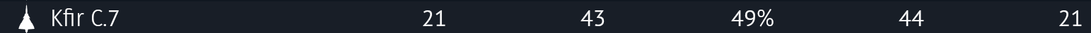 The Kfir C7 is not good at that BR it cant save its self from a radar missile and you being drag to 13.0 in which its a equivalent to a suicide pact in your team. The only redeeming factor is that your Python 3s which loves flares and your very hot of an J79 engine strapping in your airframe with canards. AlvisWisla just above the bell curve statistically but most of the players includes me and this 80% that voted that his planes BR needs to be 11.7 we are the majority that this plane needs a BR reduction of 0.3 in Air RB.