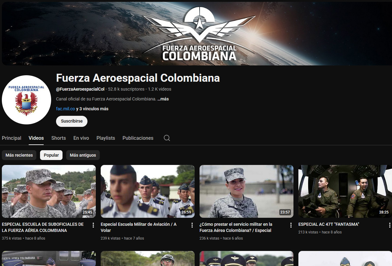 The Colombian Air Force’s Official YouTube channel, the total amount of videos displayed are roughly 1200 according to YouTube’s estimates.
