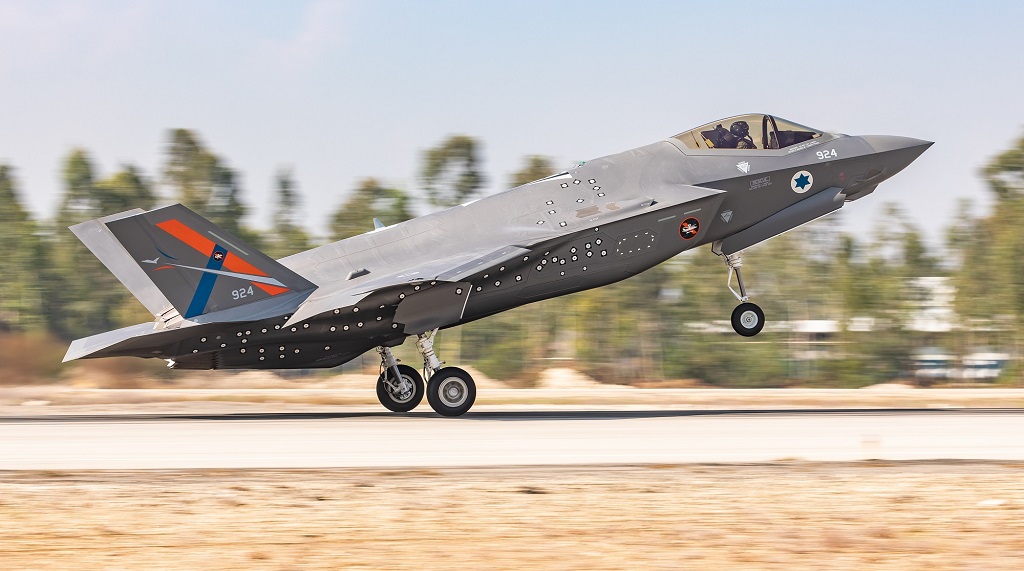 Flight Test Center “Manat” Squadron F-35I taking off a runway