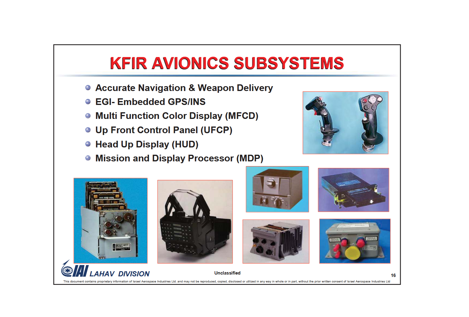 Kfir avionics showcase by the Lahav Division Brochure, most components can be see in their bare state.