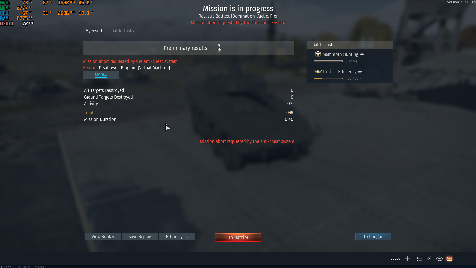 To explain the situation, i had to restart my game to launch msi afterburner app to observe the temps while playing, to me; it feels like anti cheat system kicked in because of that, resulting in deciding to kick me from the match, buuutt, BIG BUT, ive been running the msi afterburner app most of my time and never had issues with it, and on top of that having such less ram on my laptop that i cannot even run chrome in the background so clearly no background apps are running, and i dont run VM.