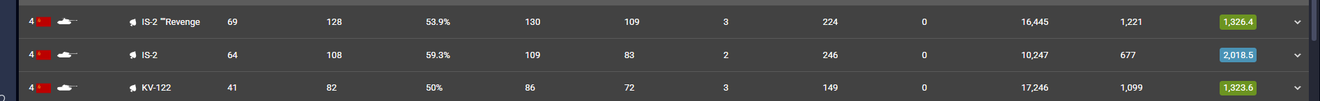 Ah yes, thats the entire reason i got me nearly all 122s in that game. The kills with that cannon are much more satisfying than with long german 88mm. Tho, judging by the same stats, you might as well notice that my most beloved 122 is IS-6. Which plays against tiger 2s alot BUT has two weakness’s removed - weak armor and SUPER LONG reload, so it plays equally good sgainst tiger 2s and against Leopard-alikes and Pattons.