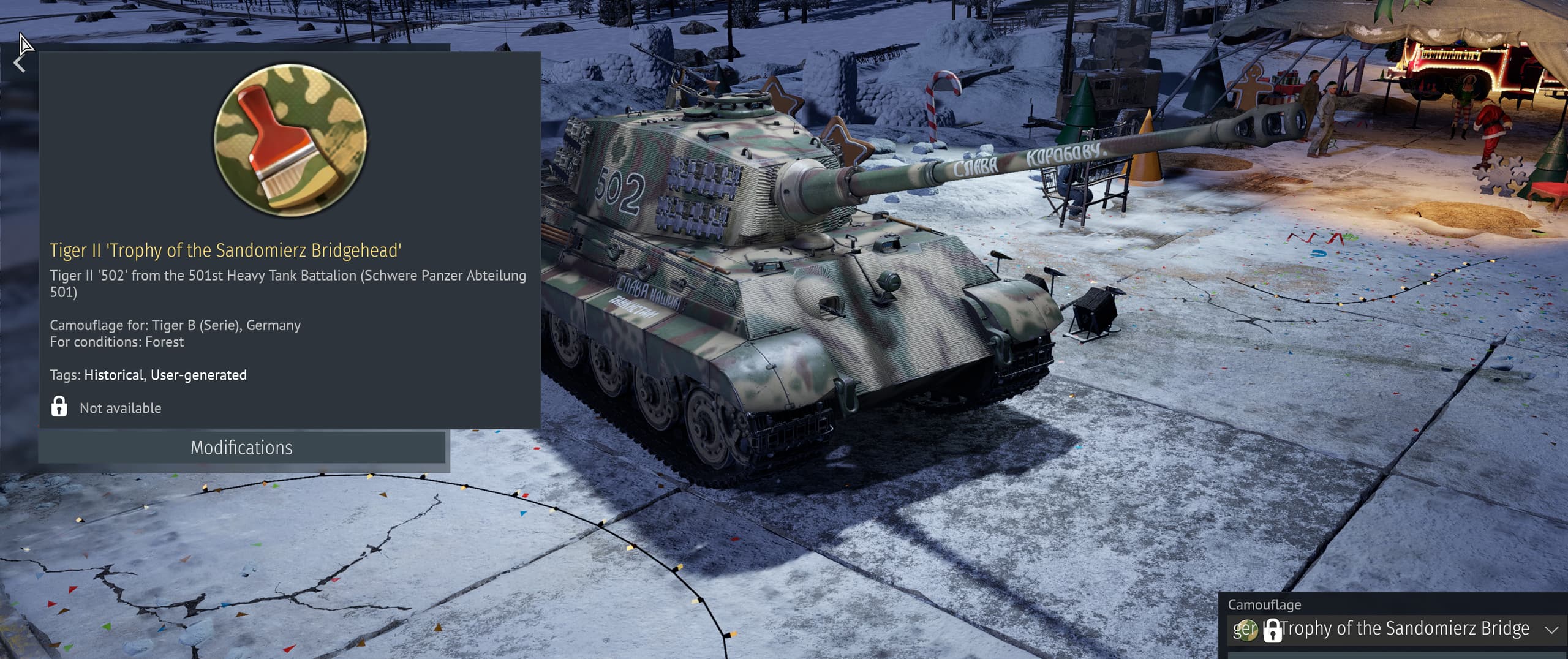 The recent ‘Line of Contact’ trophy crate now includes a historical ‘captured’ King Tiger ‘502’ skin with Soviet text and markings, which is pretty cool: