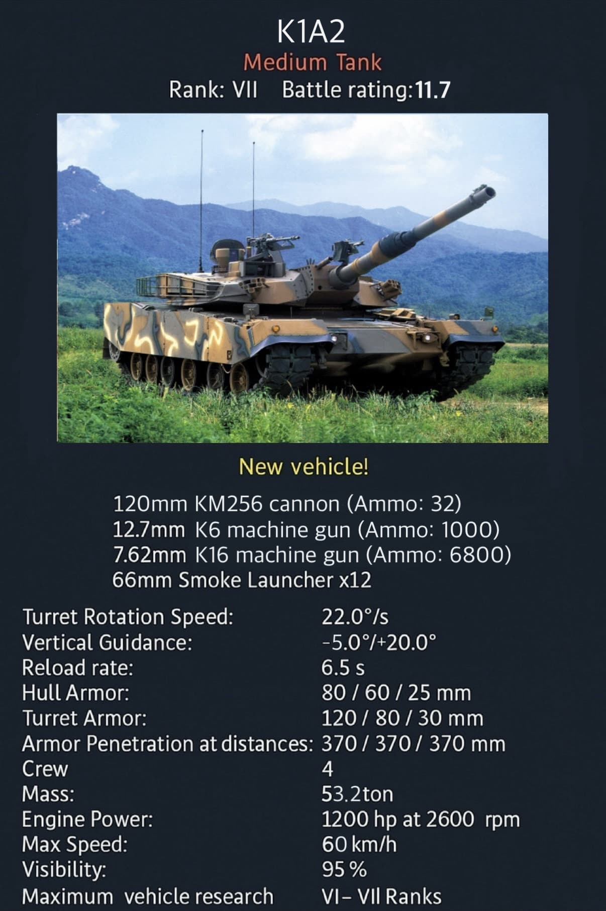 To counter the introduction of North Korea’s T-72 tanks, an upgraded version the K1A1 was later developed, featuring a 120mm smoothbore gun and Korean composite armor, with 484 units produced. From 2012 onward, further modernization led to the K1A2, integrating advanced digital systems and battle management capabilities.