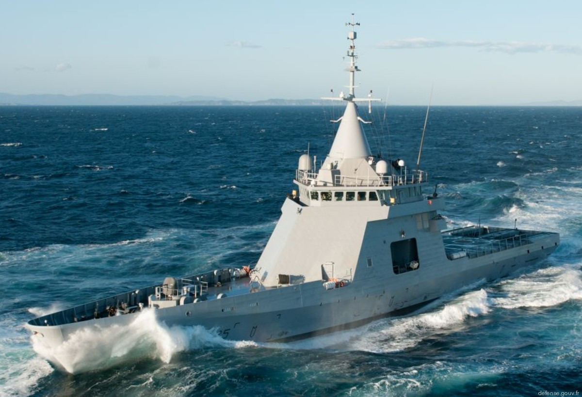 Following sea trials, the ship entered operational service with the French Navy in 2012 and was based in Toulon. Although not officially owned by the Navy, it was fully integrated into naval operations. The vessel was designed for long-duration maritime security missions and featured several modern capabilities for a patrol ship of its size. Among them were a helicopter landing deck, facilities for unmanned aerial vehicles, and two fast interceptor boats launched from stern ramps, allowing rapid intervention at sea.