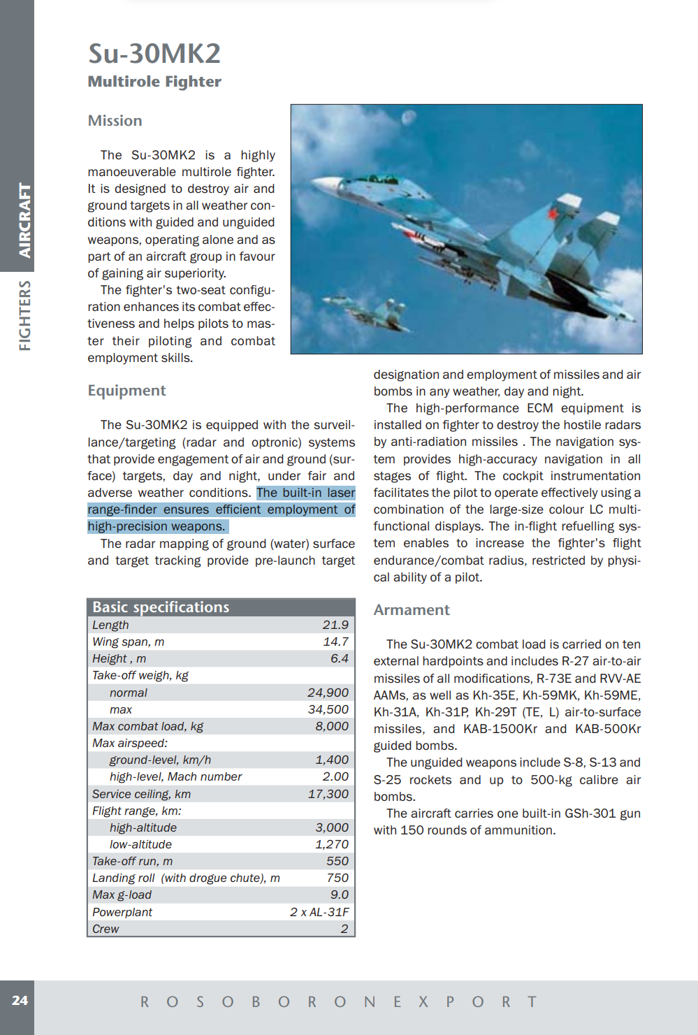 3.For example, the Su-30MKK/Su-30MK2 is equipped with OEPS…