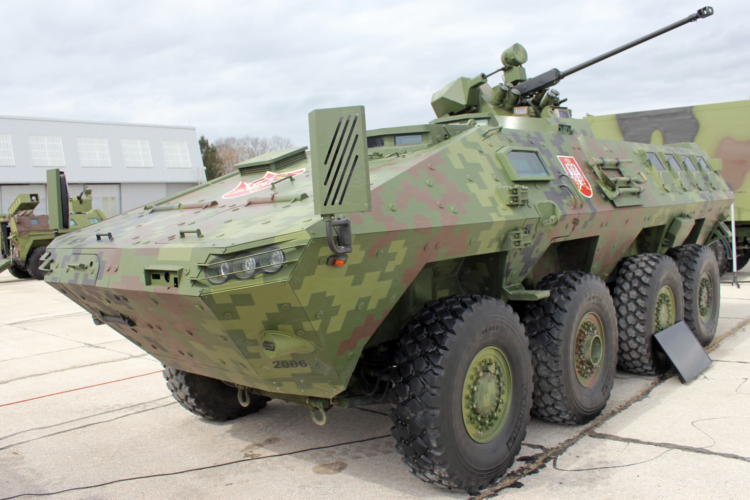 The Lazar 3 is the third edition of the Lazar series of wheeled APCs, being the most modern, well-armed, and well-protected. It presents itself as an alternative to the BTR series from the USSR/Russia, offering a more Western approach while still maintaining some familiarity and compatibility with Eastern equipment. First developed in 2015, the Lazar 3 entered service with the Serbian Army in 2017. In 2021, Serbia delivered around 24 examples to Turkmenistan for use by their Ministry of National Security. Equipped with the MB2-03 turret from the Russian company Muromteplovoz, these vehicles now fulfill an IFV role for the MNS, having been seen in MNS digital camo as part of several parades since their introduction.
