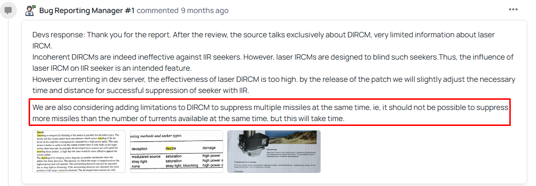 When will the helicopters’ LDIRCM finally be updated? For the past nine months, the developer response has stated that it shouldn’t be possible to intercept more missiles than there are LDIRCM turrets.