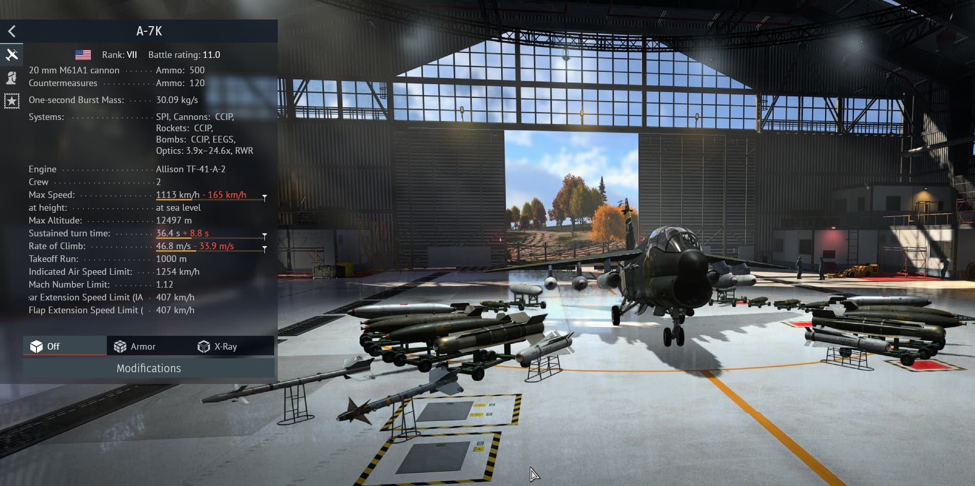 Was honestly pretty disappointed after the April BR changes not to see the A-7K Corsair II moved down, because in its current state at 11.0 it simply doesn’t get meaningful playtime compared to other option, it lacks the speed, air-to-air capability, and survivability needed to compete in up-tiers, while also not offering enough unique advantages to justify bringing it out regularly. What am I missing? A small BR reduction would have made it far more viable and enjoyable, encouraging players to actually use the aircraft instead of leaving it sidelined in favor of stronger, more versatile jets. Thank you for all input :)