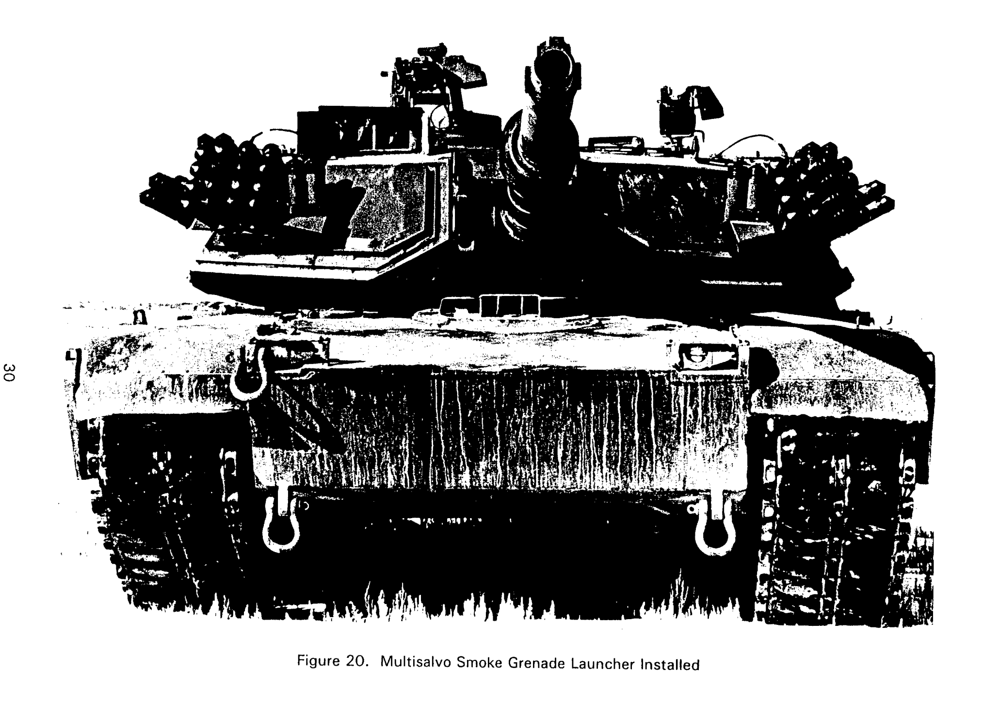 M1A1 (?) fitted with a Multisalvo Smoke Grenade Launcher: