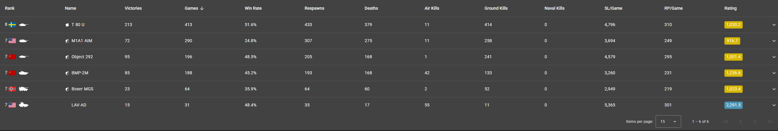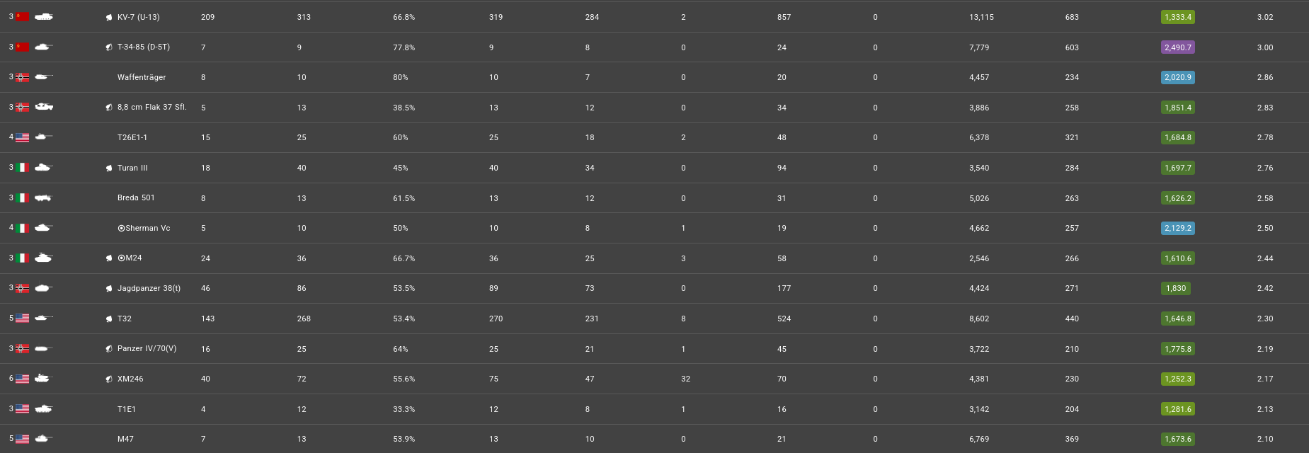 Ah yes, stats that completely shatter Necron’s statement that you aren’t skilled at the AIM’s BR. With such modern vehicles as the KV-1, T-34-85, and T1E1. Noticeably, these are your stats with the paltry sum of vehicles you have unlocked at high-to-top tier.