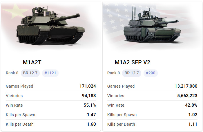 That’s why there’s such an enormous gap in statistics between US M1’s and the Chinese M1, despite being functionally identical vehicles: