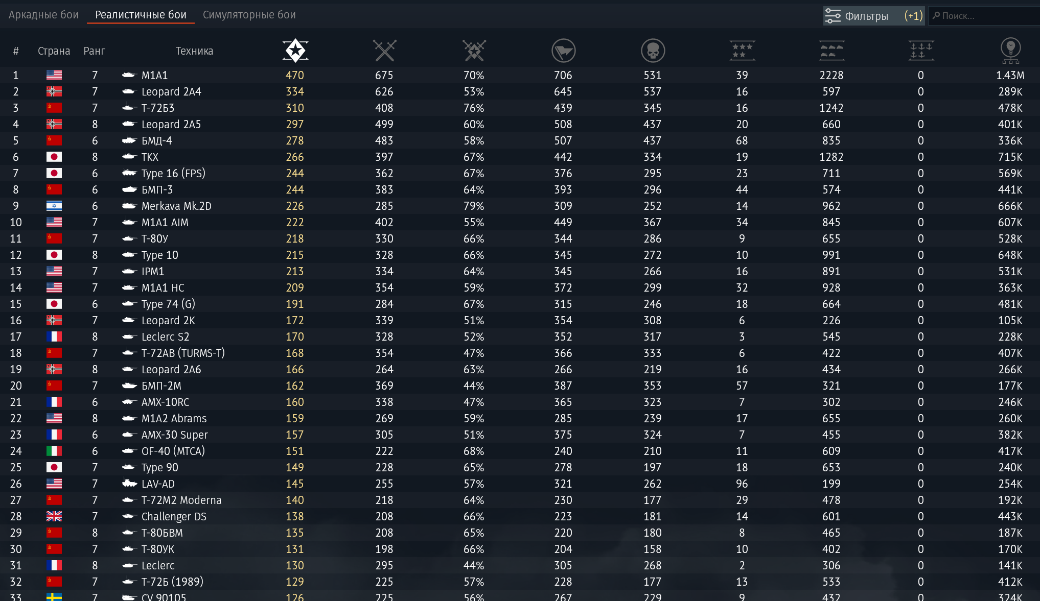 oh i see that was so OP in RB that even u did decent KPF in it, but if u compare our stats in AB for this tank u would see that M1A1 stats not much higher than on other tanks