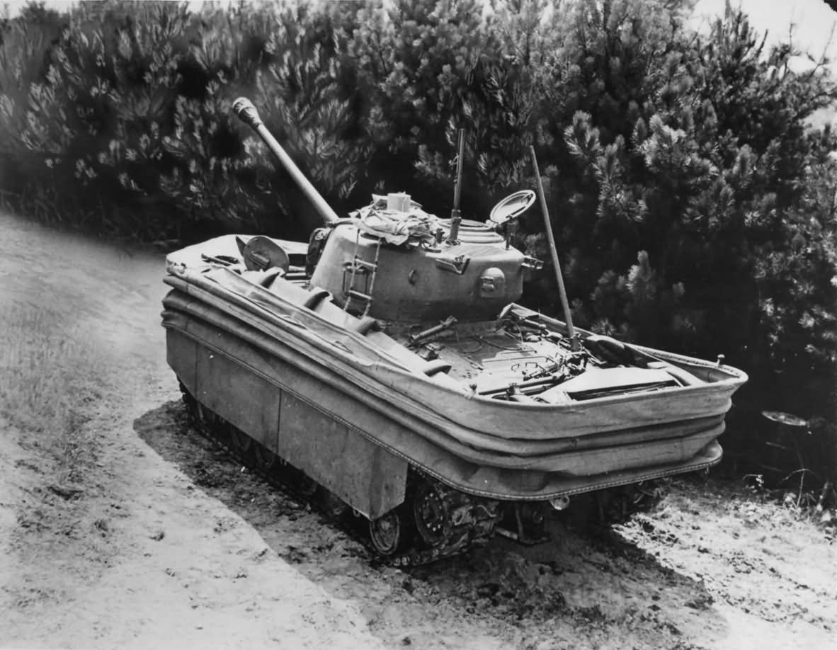 This concept led to the development of the Duplex Drive (DD) tank, a project spearheaded by Nicholas Straussler, a Hungarian-British engineer. In May 1942, Straussler’s first successful prototype, based on the Valentine infantry tank, demonstrated the feasibility of amphibious armor. These early DD tanks used a canvas flotation screen that surrounded the tank like a skirt, allowing it to float. Propellers mounted under the rear deck propelled the tank through water.
