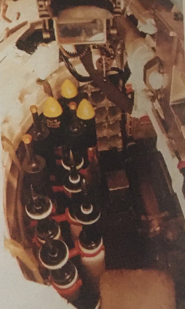 IWS ammunition stowage in the Leopard C1 mounting, showing HESH (top), HEAT (middle), L64A4 APFSDS (lower left), and T-2 APFSDS (lower right)