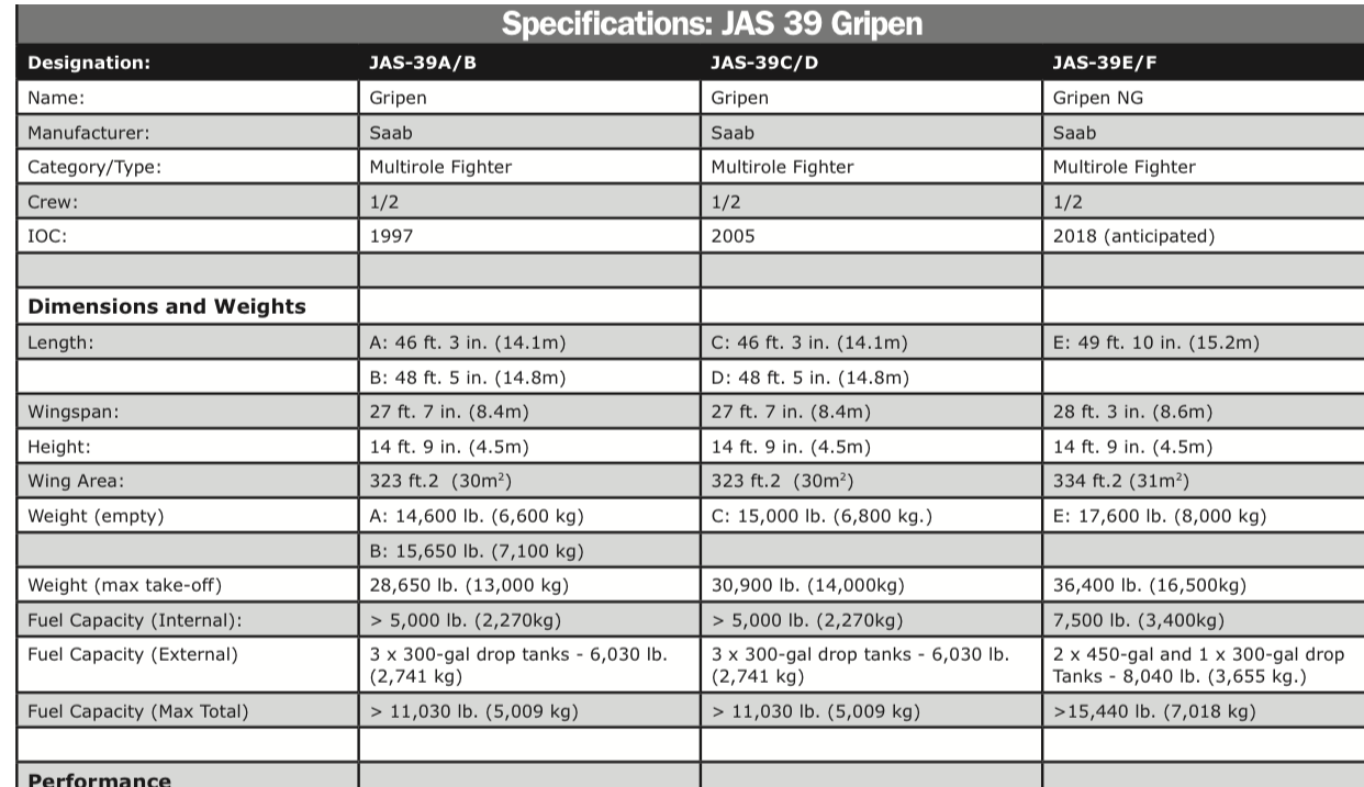 Gripen c wing loading is 230 kg/m2, while gripen e is 250 kg/m2.