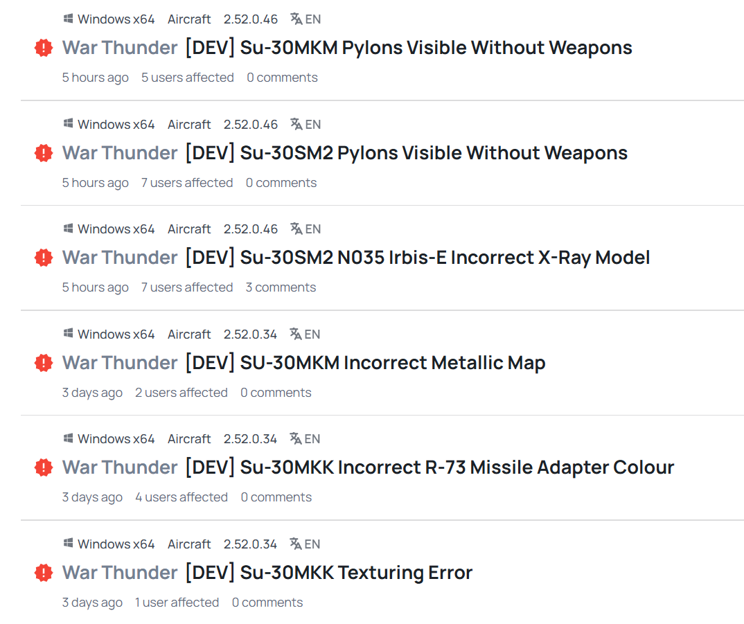 Gaijin can be a bit funny about bug reporting things until they’re actually acknowledged as being part of the update at hand.