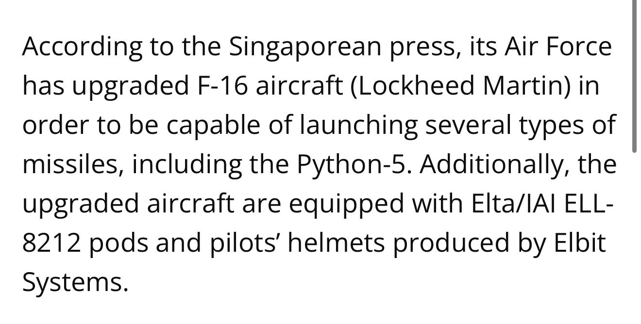 Singaporean F-15 and F-16 both have Israeli systems and/or missiles, so they’ll likely go to Israel.