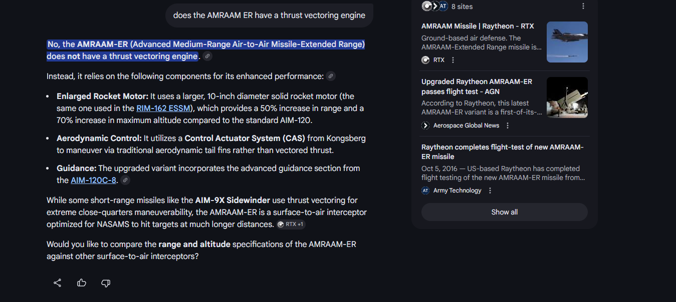 The AMRAAM ER has thrust vectoring while the C5 and C7 don’t