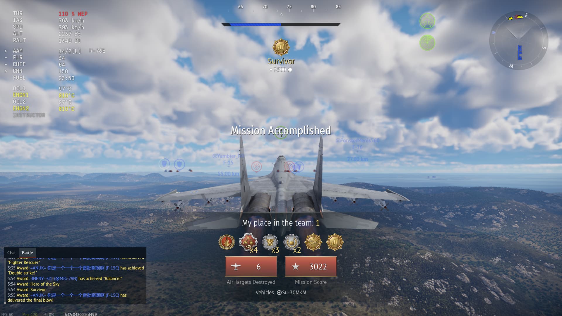 That was literally my first battle of the day too, crazy work, but yeah F-16 PoBit ain’t doing jack shit 9/10 times against a Su-30 with a functional brain