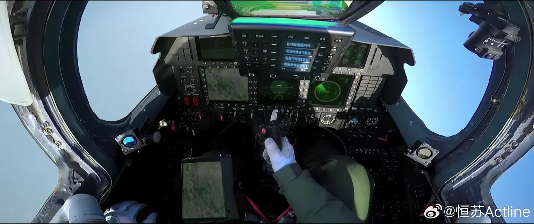 We have pictures of the J15 cockpit but not the J15T :/, I don’t know if the MFDs have been improved or moved, but in this photo taken from the outside, we can see that the HUD has been improved, it’s bigger and rounder.