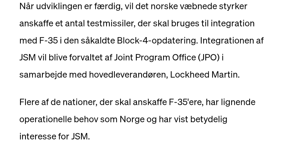 Yeah some US F-16’s did testing around 2015 with later models of JSM being made for testing purposes and brought to Norway for their integration with Block 4 F-35A to finalize testing for the JSM for Block 4 use.