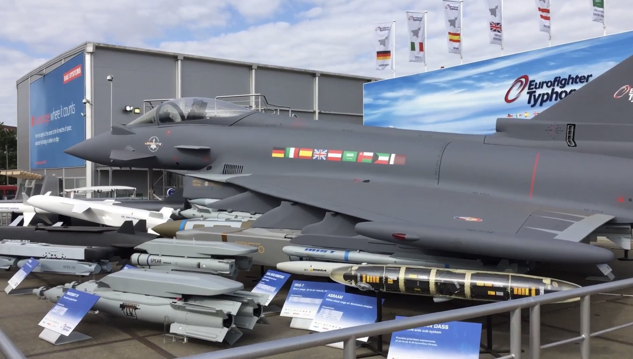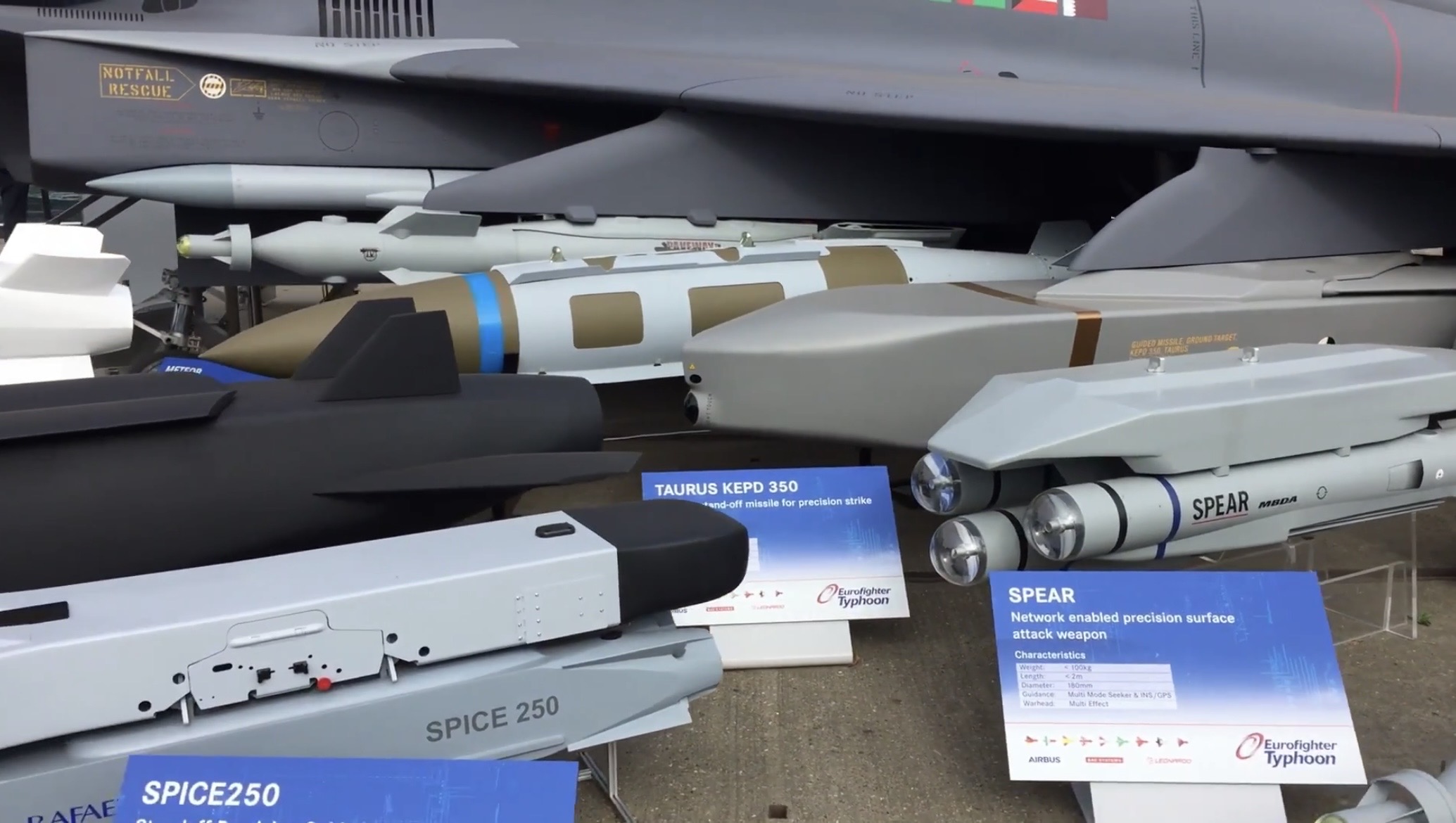 Farnborough Airshow 2018 showcasing the SPICE-250 bomb on the proper racks for the Eurofighter.