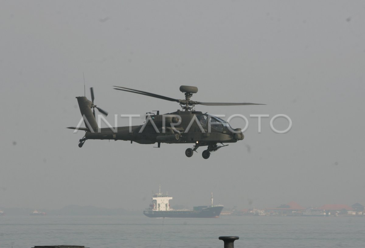 One of the two units of AH-64D Apache Longbow attack helicopters was presented at the rehearsal of the 69th Anniversary of the TNI at the Ujung pier, the Indonesian Eastern Region Fleet Command of the Indonesian Navy, Surabaya, Saturday (4/10). TNI commander General General Moeldoko confirmed that the purchase contract and the down payment has been handed over to the manufacturer so that in a few years the AH-64D Apache Longbow can be owned by the TNI AD.