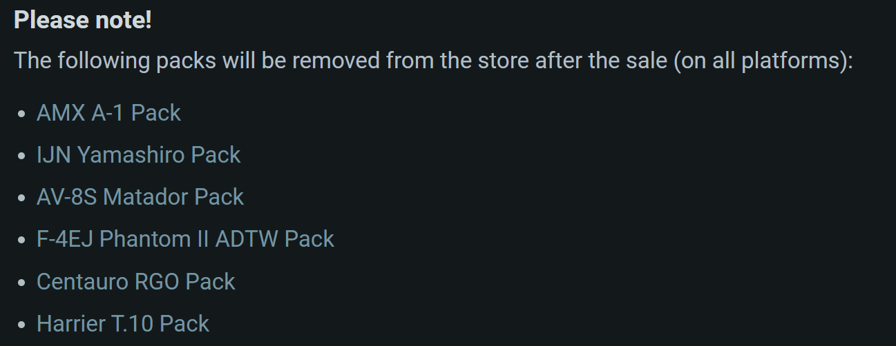 The F-4EJ has kinda aged, the AV-8S is prob didn’t sell well and the Yamashiro is going to make people buy a naval pack now before they implement the horrible new system for repairs,fire and sealing
