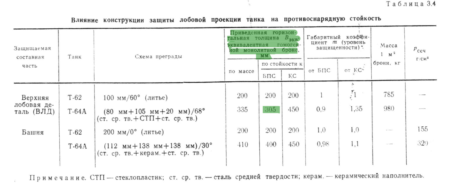 Literally, the T-64A, with its non-optimized 80-20 armor package, provided 305mm of steel equivalent at 0 degrees.