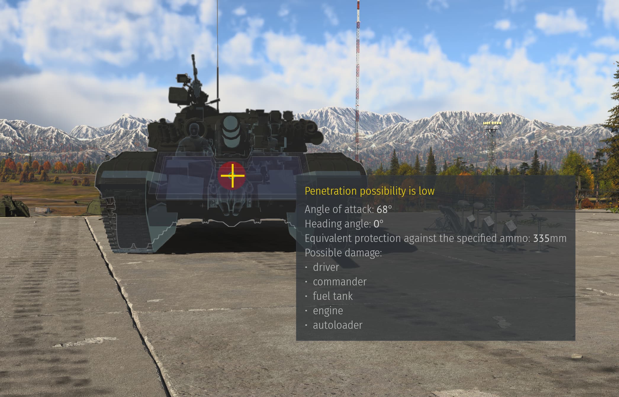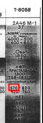 In the game, it’s 640 for the 50-50-50 + K-5 package. Here, it’s 620-630 for the 50-30-50 + K-5 package, which was possibly installed on the T-80U/UD/UK instead of the 50-50-50.
