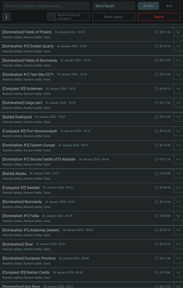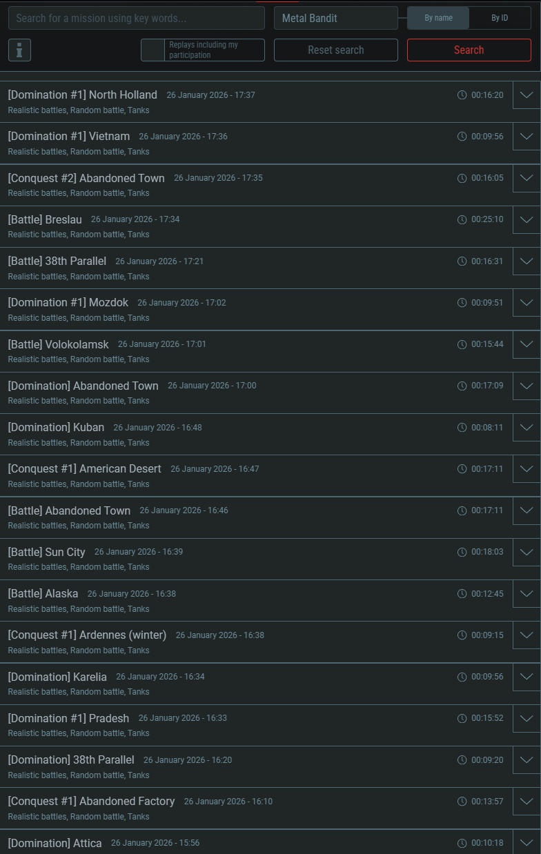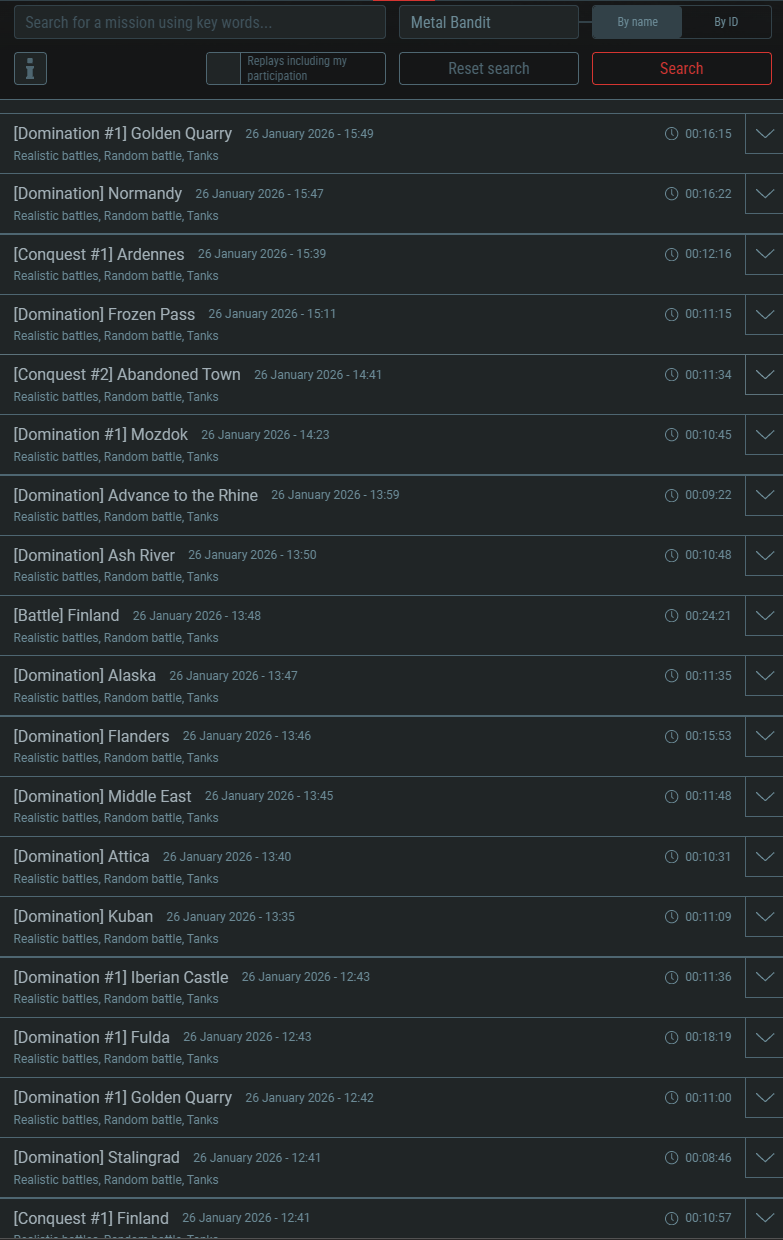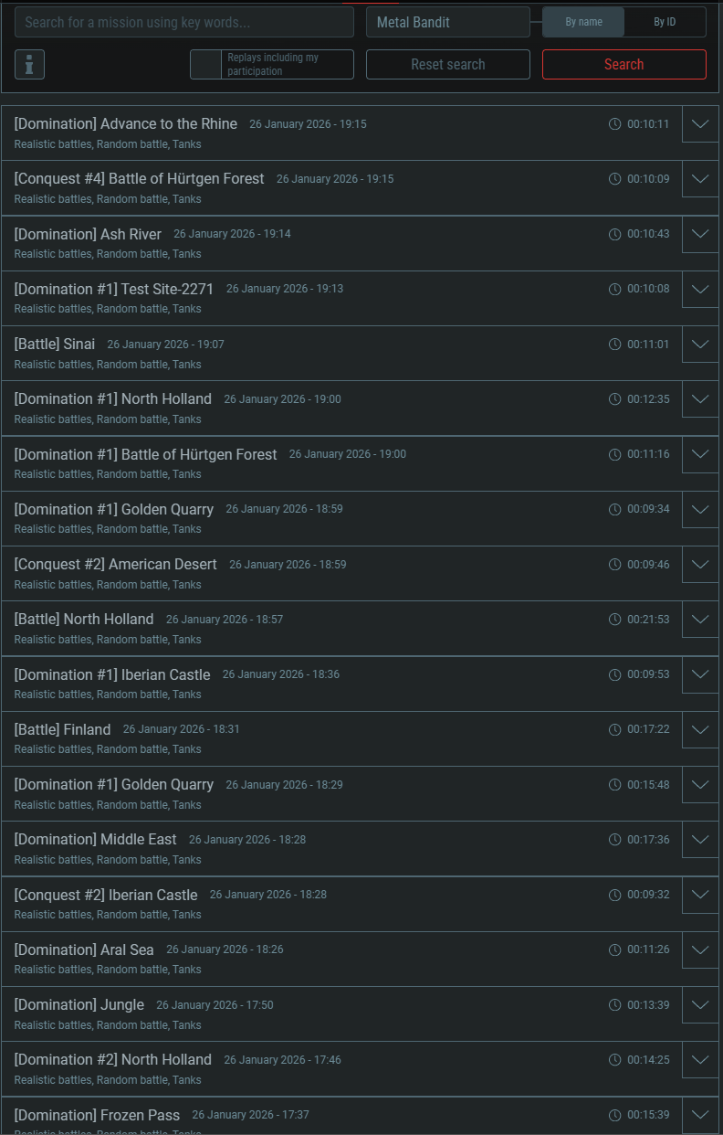 You can look through your replays for the past 14 days here: ( Gaijin Entertainment - Single Sign On ) just search your name (or log in to the website and check the “Replays including my participation” box and then click search).