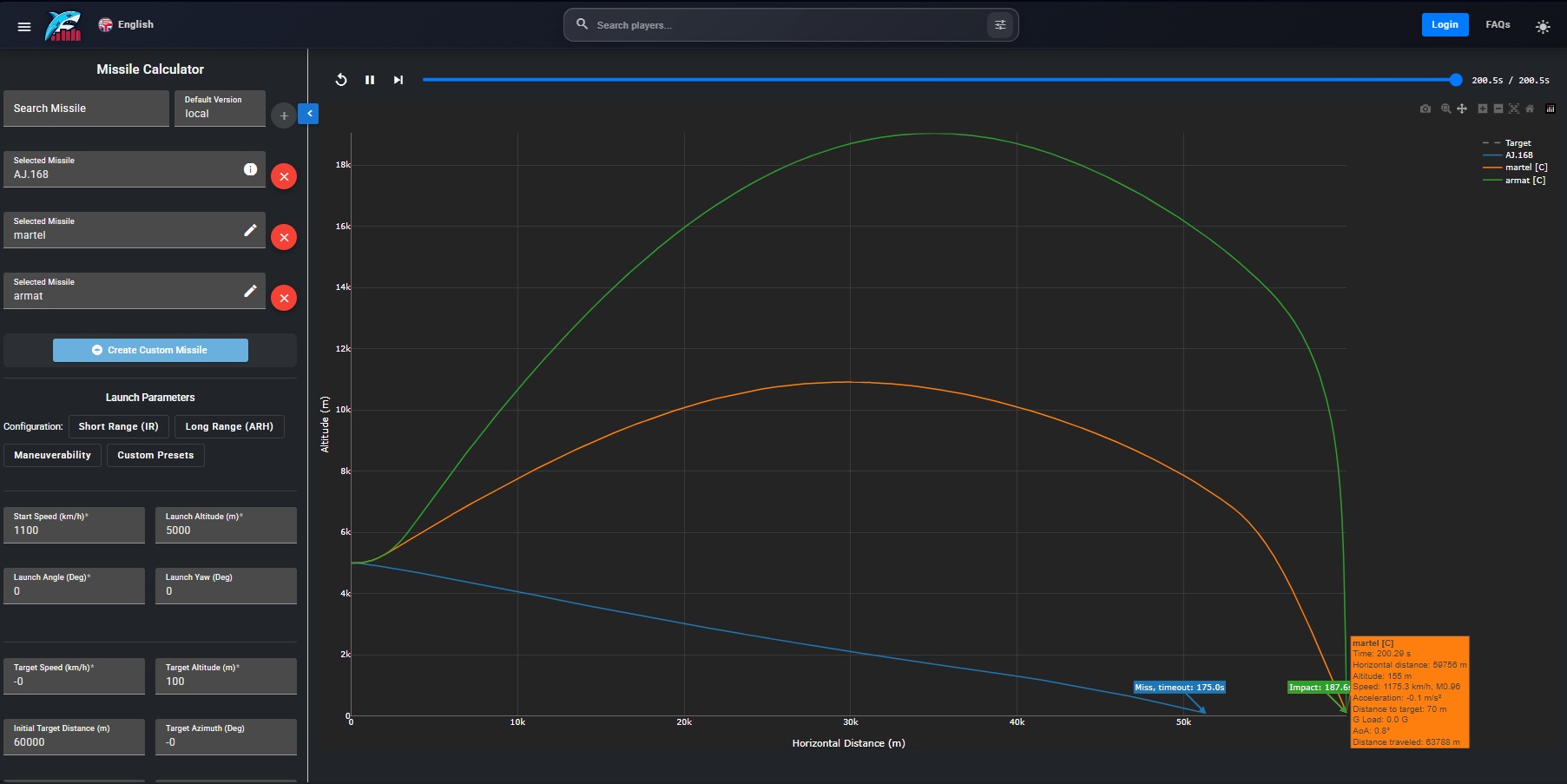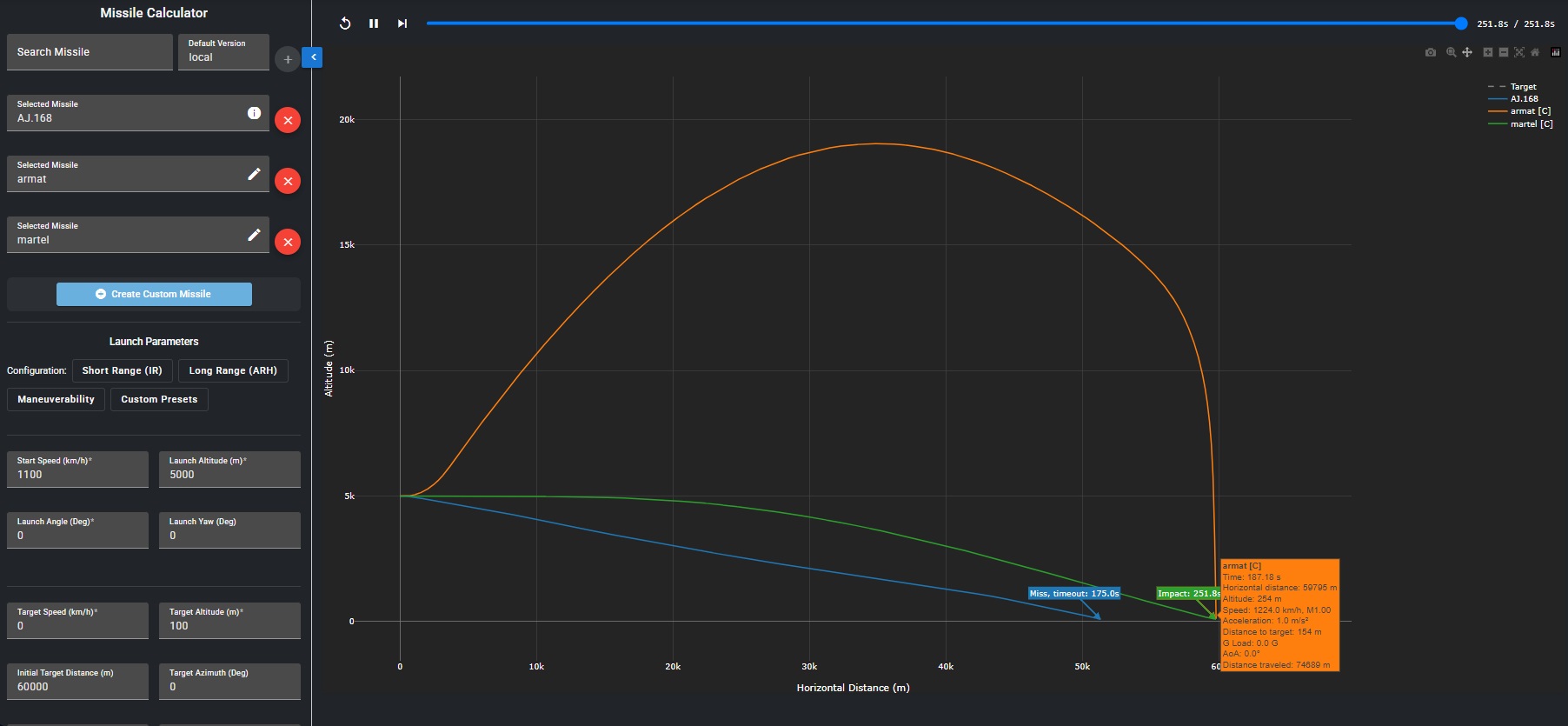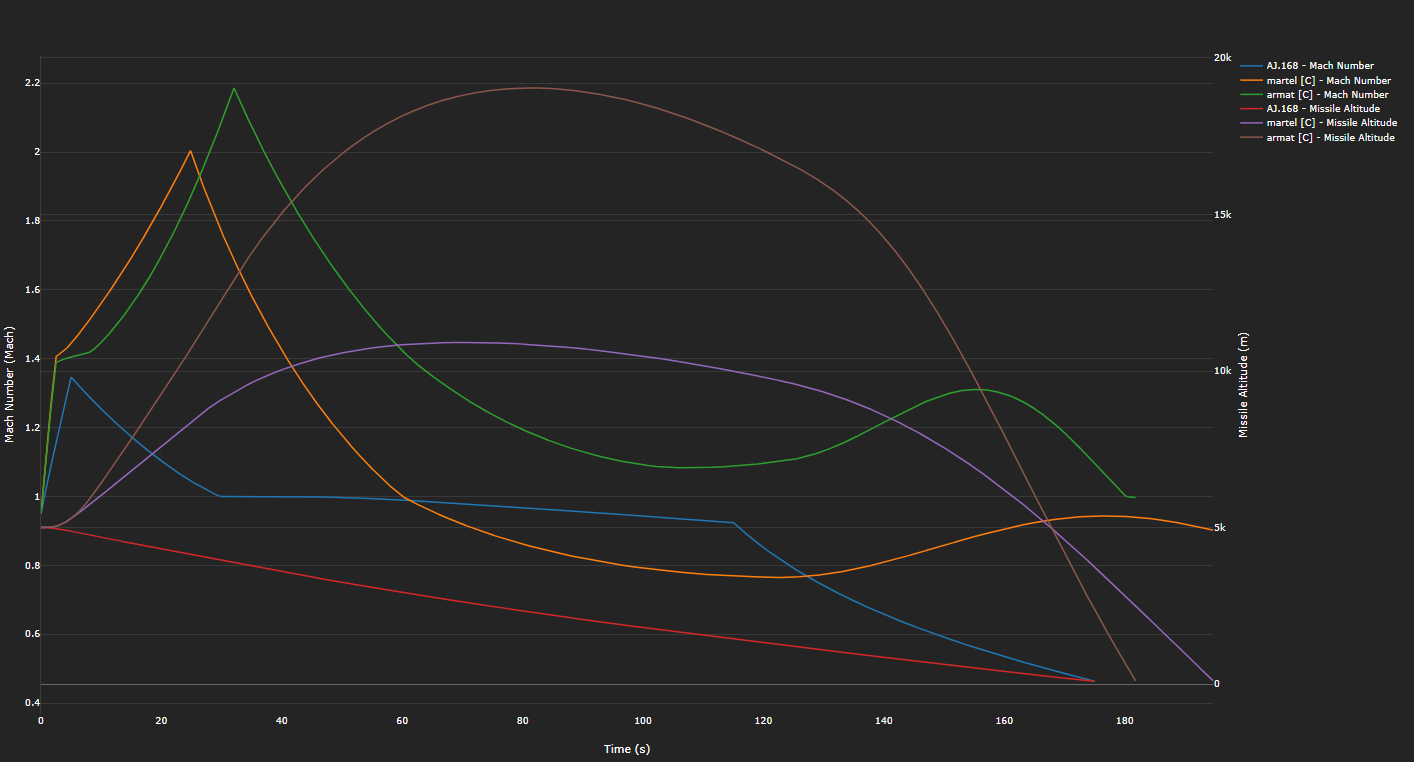 For balance purpose in game, it is possible to vary these characteristics significantly, for example by allowing only mode 1 with a degraded maximum range of let say 15 to 30Km, and mode 2 with a 15 to 20 Km effective seeker range from launch point. Even if we have to admit that it would be sad.