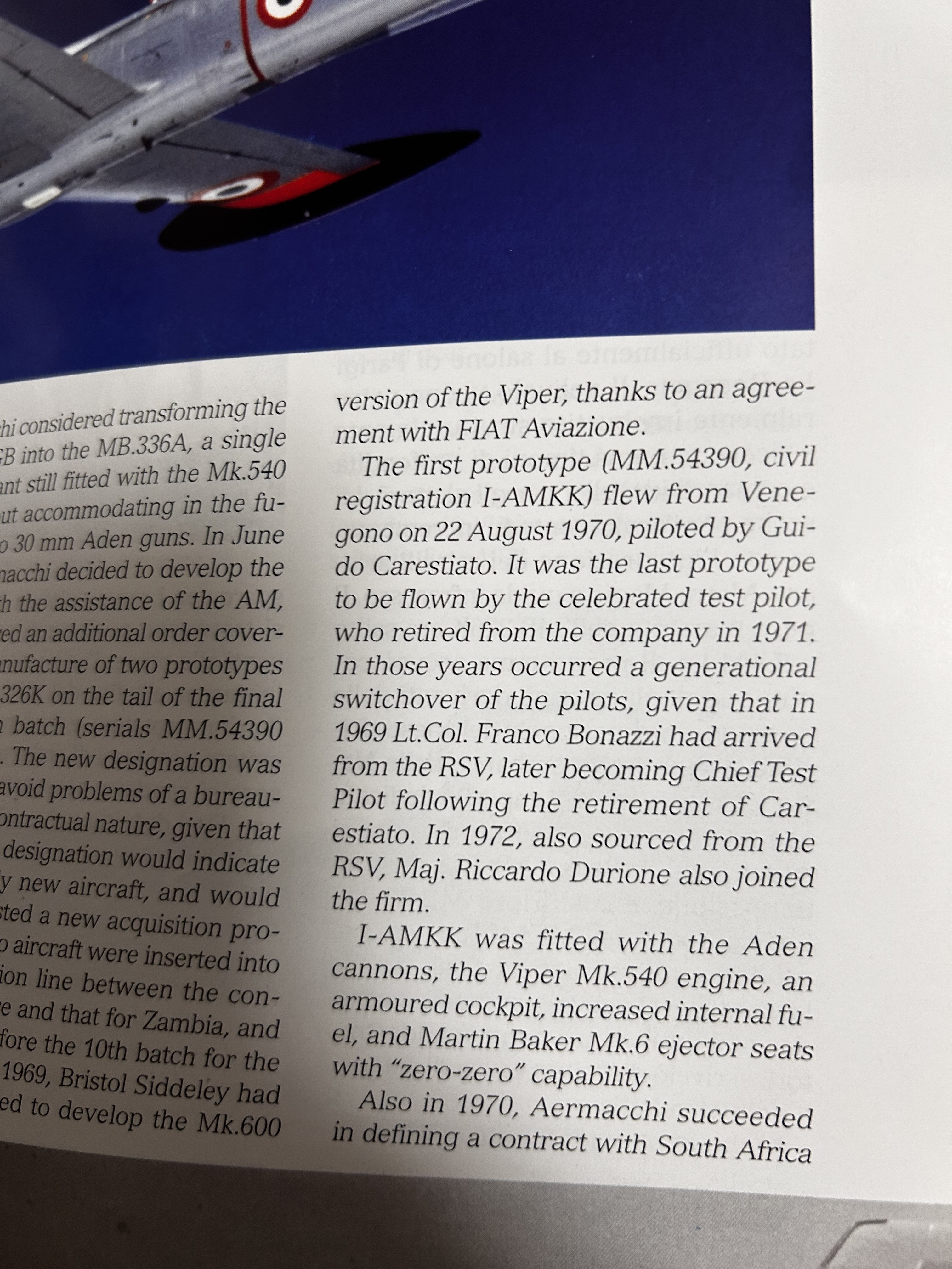 However, I believe it is important to clarify that the manual P.I.1A-MB326K-1 refers to the MB.326KC, which was the version exported to South Africa (AKA the Atlas Impala).