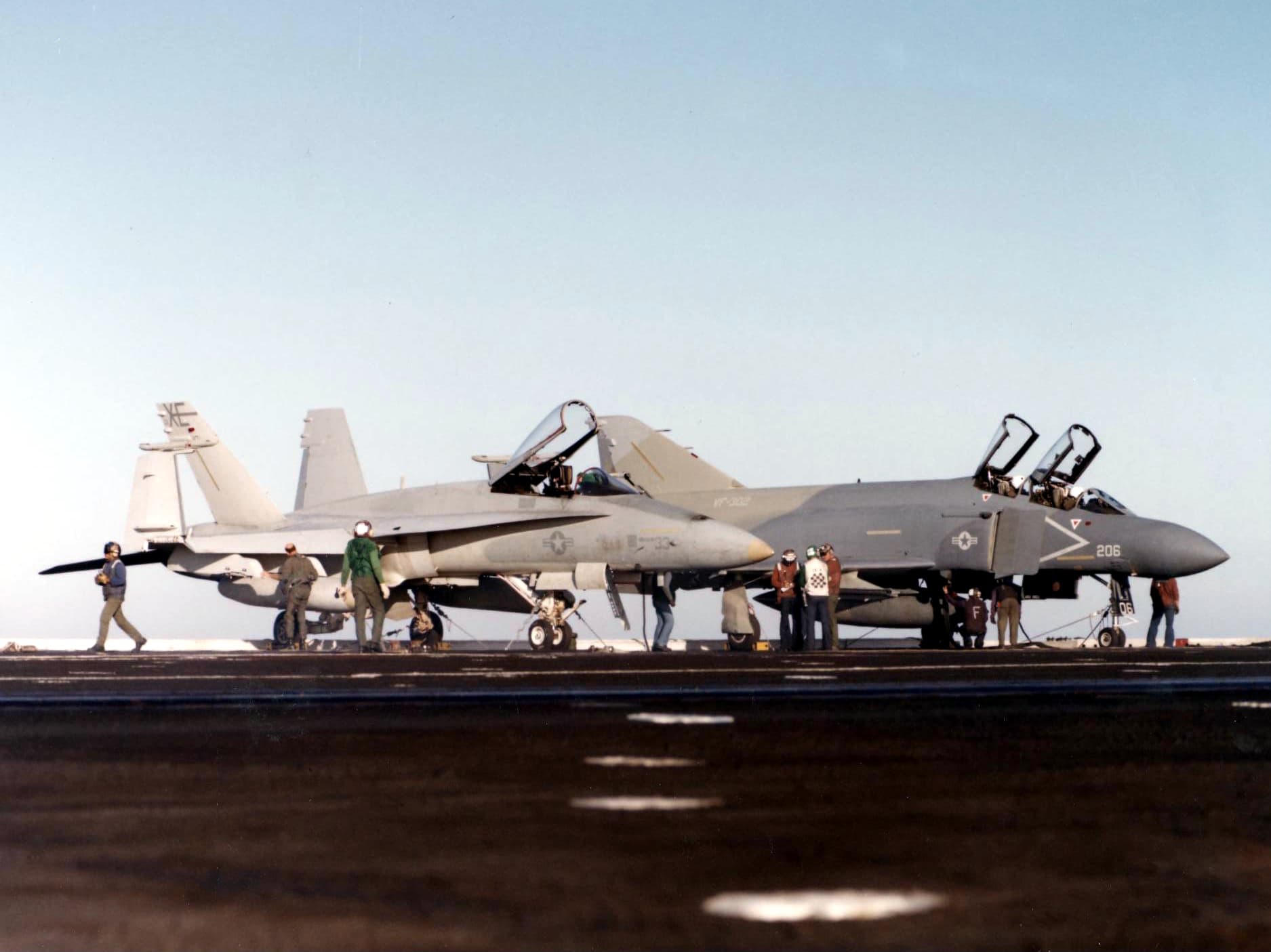 sadly this is the only photo i could find of a F-4S next to a F/A-18 legacy hornet