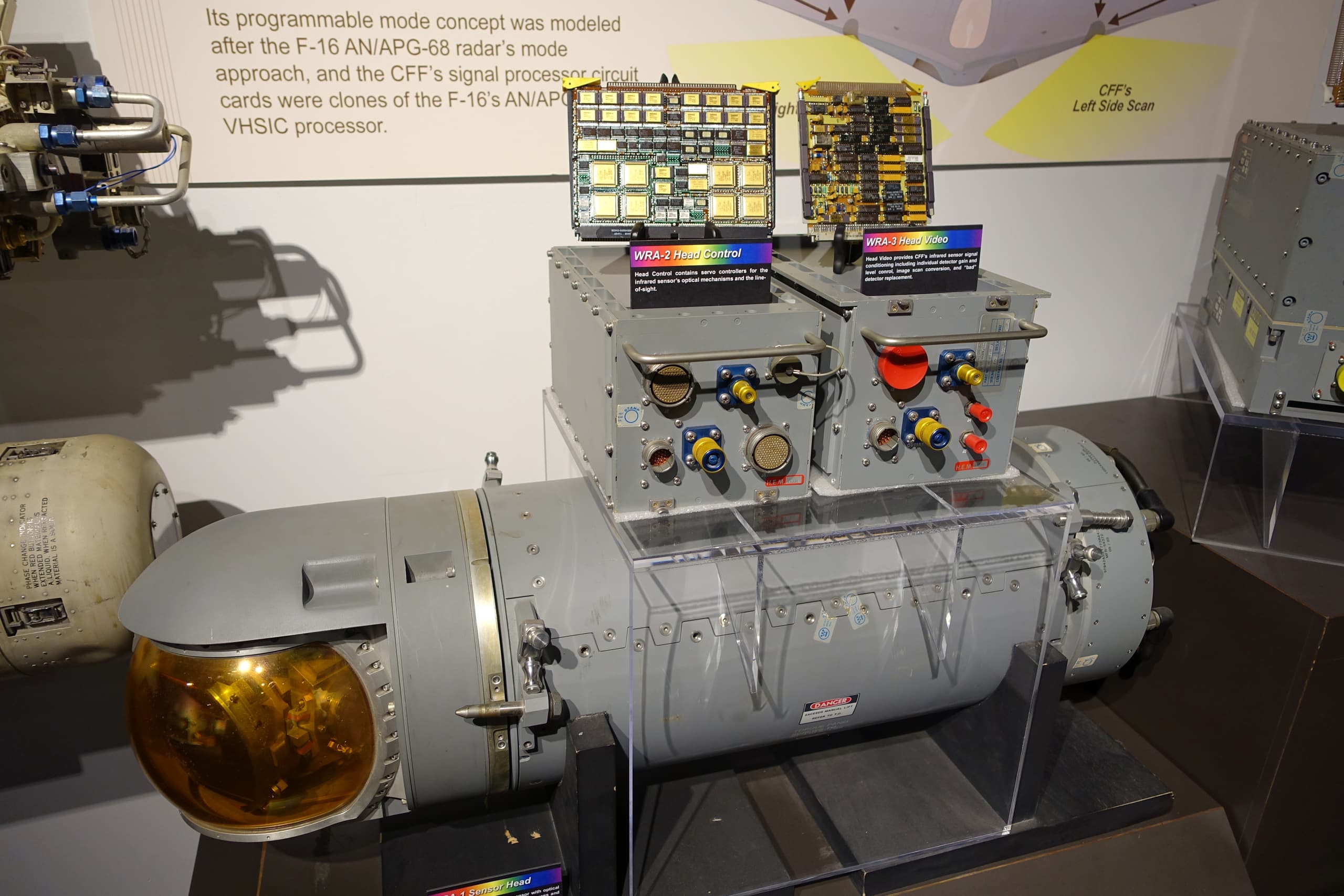 The AN/AAR-53 Combined Function FLIR (CFF) is an optical system dedicated to the A-12, combining FLIR and IRST into a single unit. It is consisted of WRA-1 Sensor Head, WRA-2 Head Control, WRA-3 Head Video and WRA-4 Digital Processor. The CFF was to be installed in the place right next to the radar.