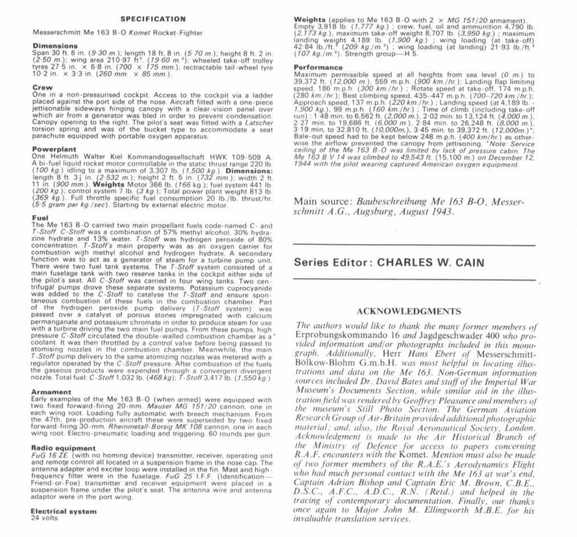 but for unknown reasons, it has weakened very slightly to -1m and +1m/sec compared to the Me 163 B-0 in the upward and turning speeds.