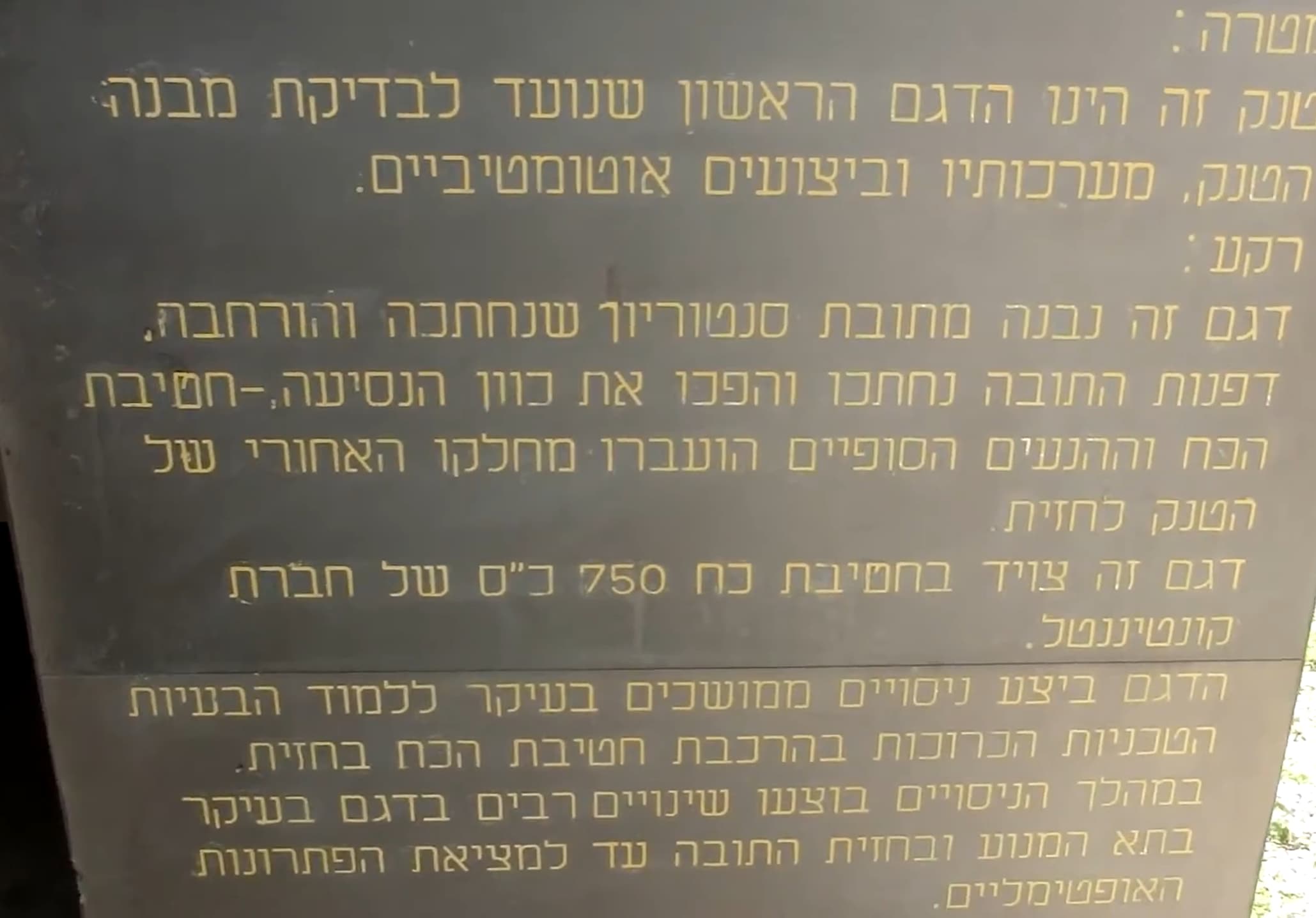 ㅤBefore the Yom Kippur War, in July 1973, the first test drive of Degem.001 was carried out, followed by experiments on other models of the Merkava in the Negev and Sinai sands. During the test drives, the engine overheating problem was discovered. As a solution to the problem, Lt. Col. Israel Tillen